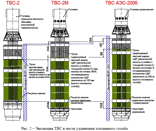 Основные элементы ТВС-2М (головка, хвостовик, НК) признаны наиболее удачными и приняты за основу конструкции ТВС АЭС-2006.