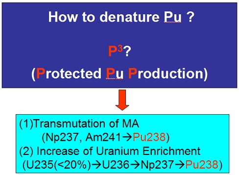 Идея заключается в увеличении доли 238Pu за счёт трансмутации младших актинидов или увеличения обогащения по 235U в урановом топливе.