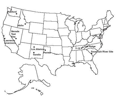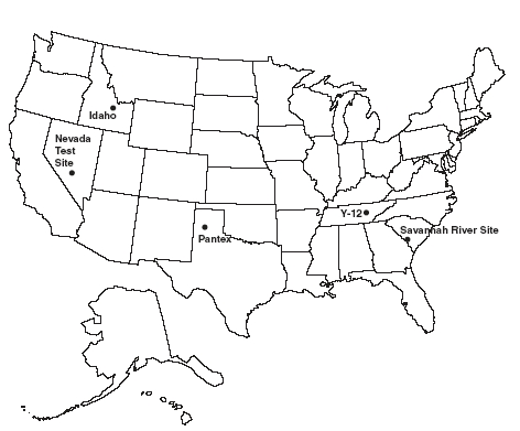 В докладе, подготовленном GAO в октябре 2007 года, напоминается, что различные подразделения американского атомного ведомства хранят ядерные материалы категории I на 10 площадках в 8 штатах, а именно: