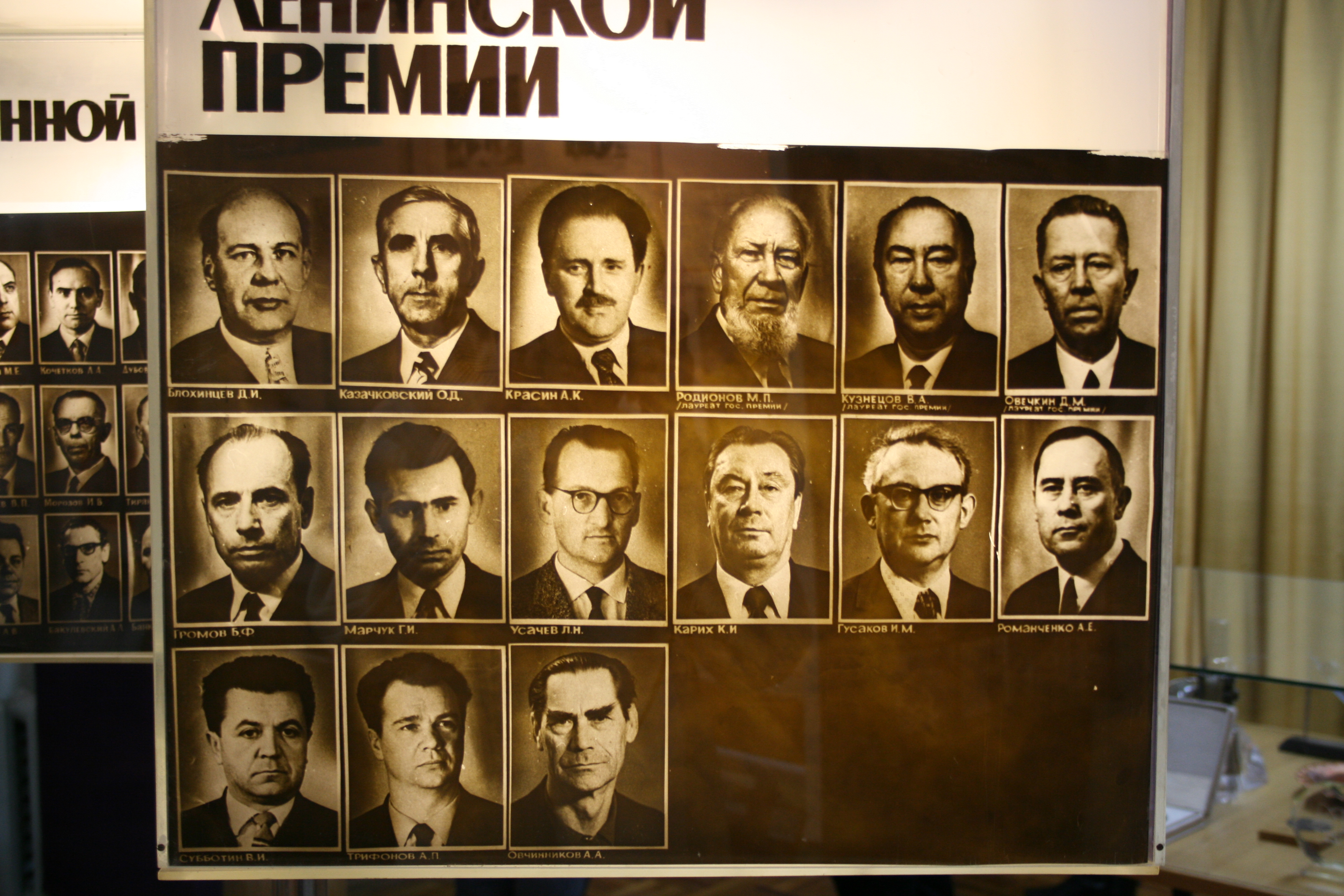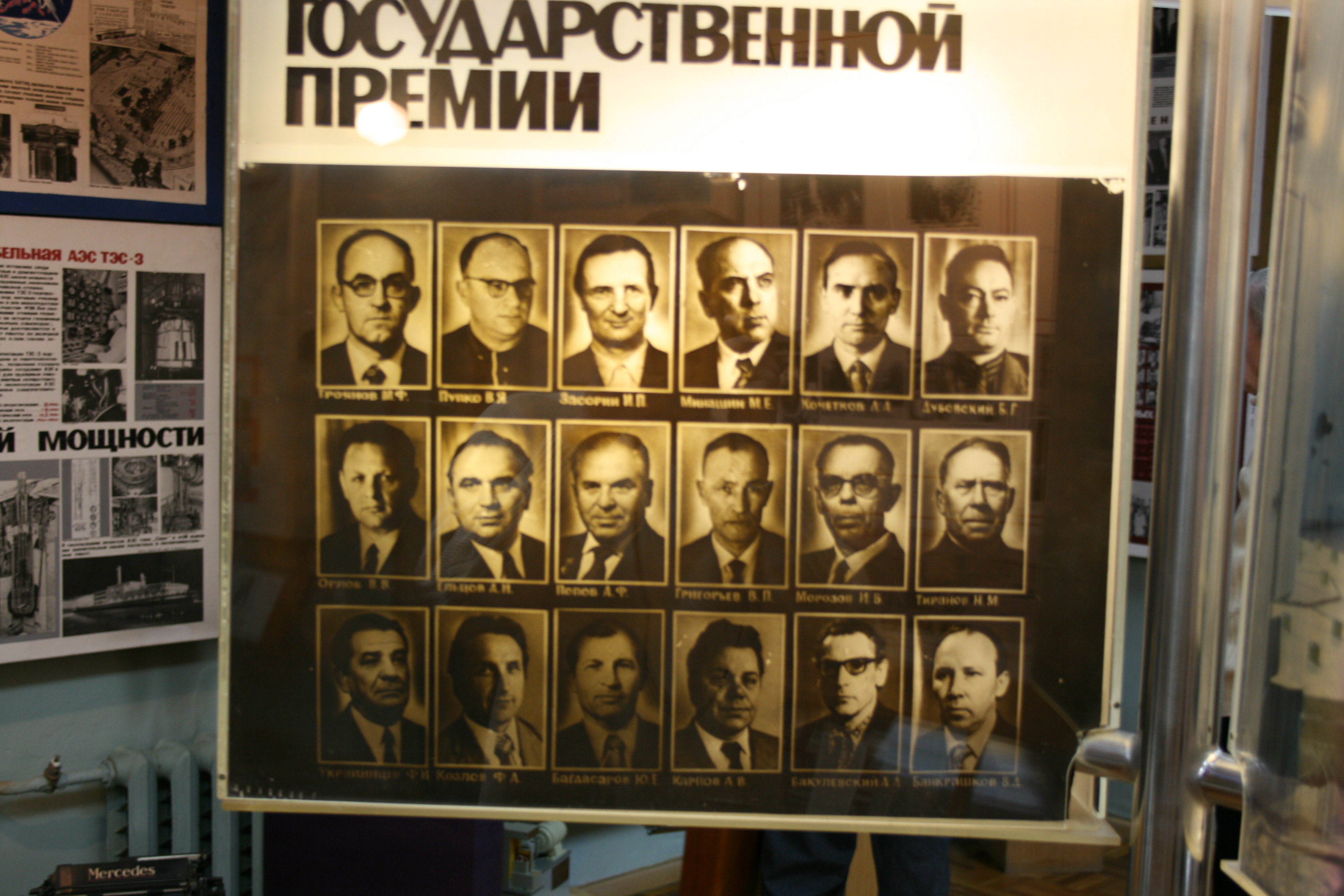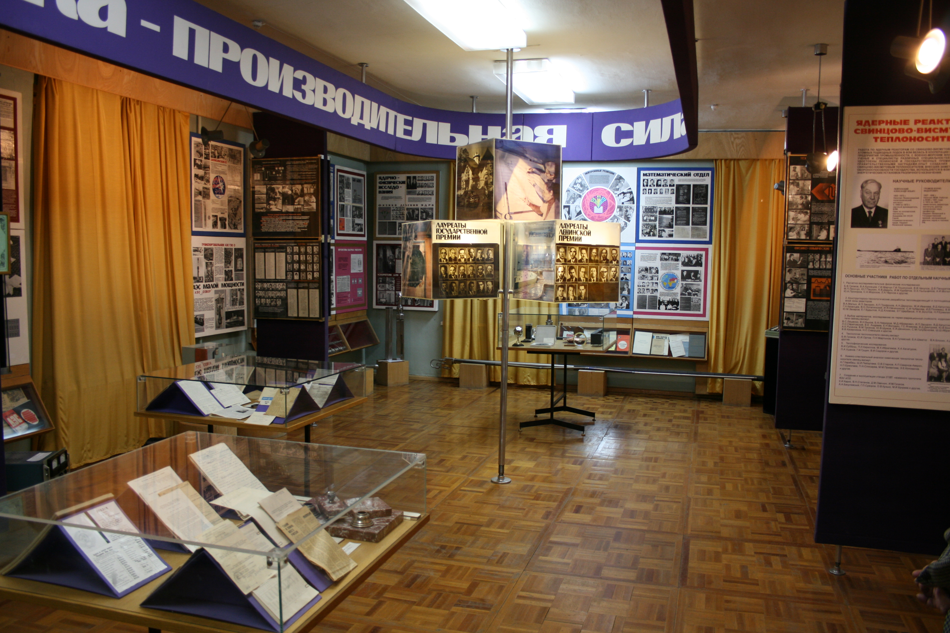 Труд учёных и инженеров ФЭИ на благо атомной отрасли неоднократно отмечался высокими наградами Родины. На этих стендах представлены наши лауреаты Ленинской и Государственной премий, о жизни и деятельности каждого из которых можно проводить отдельную экскурсию.