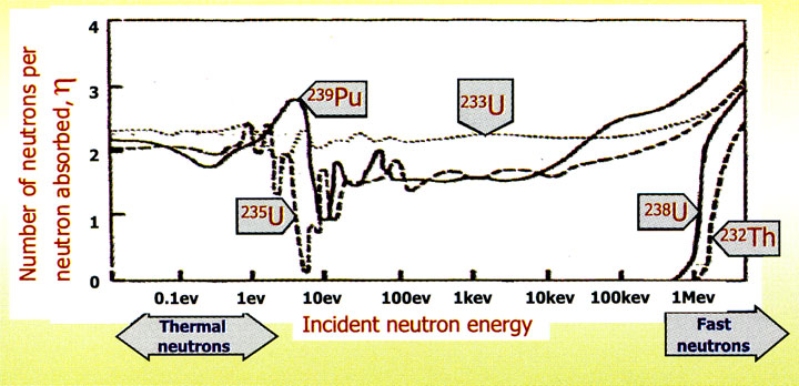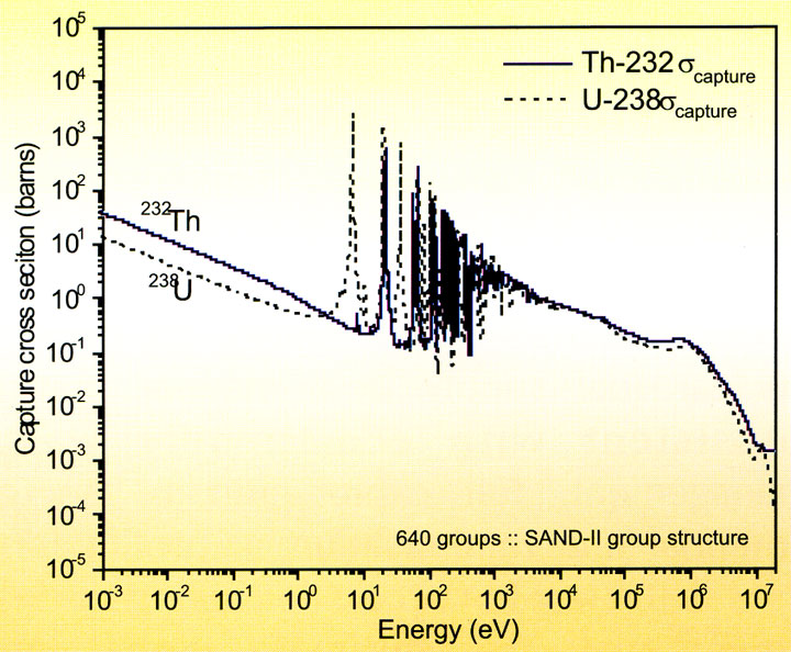 Сравнивая сечения захвата 232Th и 238U в тепловой области (7,4 барна против 2,7 барн), можно увидеть, что торий даёт больший вклад в захват нейтронов, чем его урановый сырьевой коллега. Это означает, что в реакторе с ториевым топливом можно обеспечить меньшую в процентном отношении потерю нейтронов за счёт паразитных захватов на конструкционных материалах и, соответственно, более высокие параметры воспроизводства.
