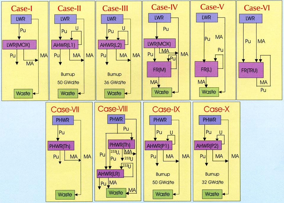 В своей работе Какодкар и Синха провели сравнение различных путей утилизации или рециклирования плутония, накапливающегося в тепловых реакторах, а также рассмотрели роль, которую в этом процессе способен сыграть торий. Главным критерием для сравнения различных сценариев индийские специалисты выбрали общее количество плутония в ОЯТ и производство младших актинидов.