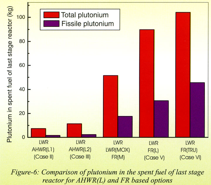 С точки зрения утилизации плутония, наиболее выгодным представляется использование стандартного варианта AHWR(LR) в симбиозе с "подпиточным" реактором PHWR(Th). После работы такой цепочки плутония остаётся мало, и его качество максимально далеко от оружейного. Но для целей минимизации массы младших актинидов наилучшим оказывается сценарий со стандартными PHWR(Th).