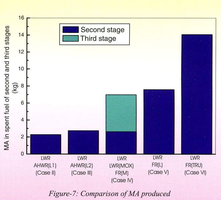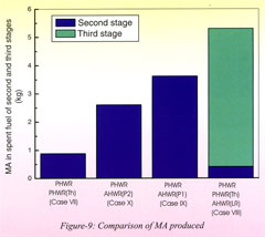 Из сравнения результатов становится очевидным, что при использовании ториевых реакторов AHWR можно на порядок улучшить утилизацию плутония из легководных реакторов, причём остаточный плутоний будет состоять, в основном, из сырьевых изотопов, а количество младших актинидов в ОЯТ AHWR будет в несколько раз меньше, чем в ОЯТ быстрых реакторов.
