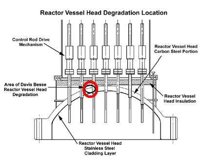 отмечено красным как Area of Davis Besse Reactor Vessel Head Degradation