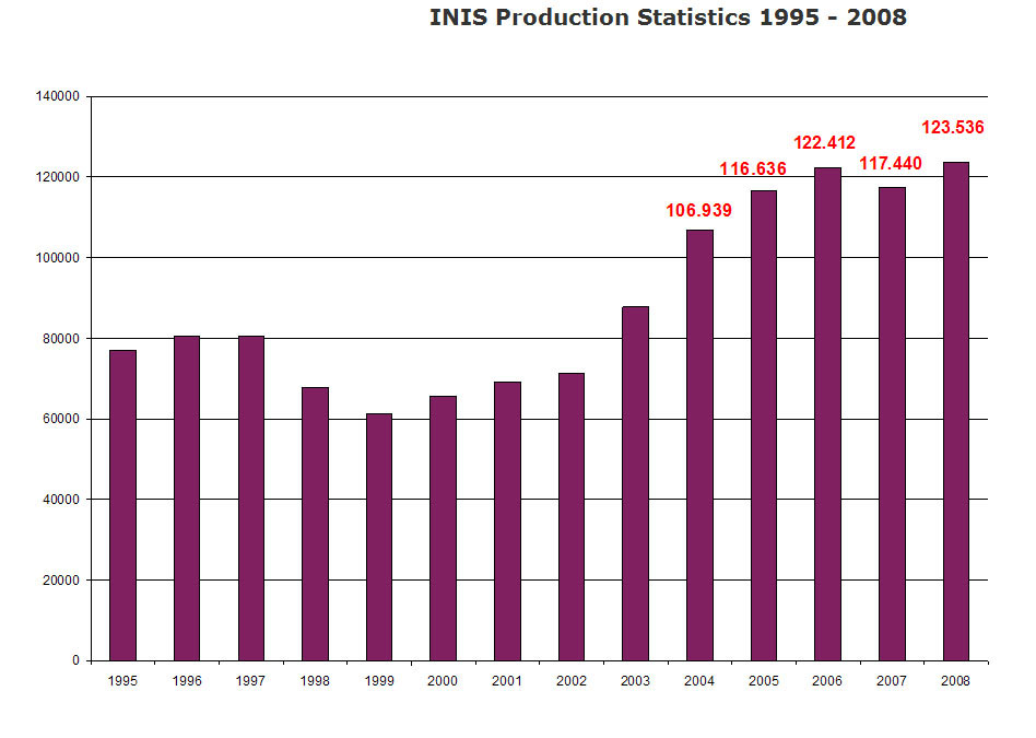 За последние годы количество вносимых записей в базе INIS существенно возросло - каждый год теперь добавляется примерно 120 тысяч записей.