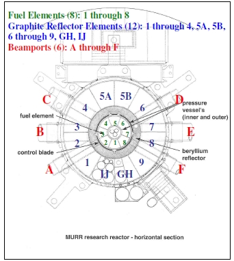 Поперечное сечение реактора MURR