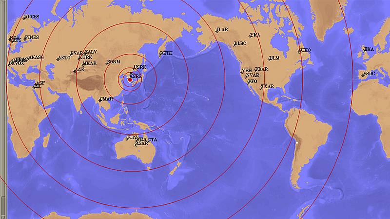Сейсмостанции, зарегистрировавшие события в КНДР 25 мая 2009 года