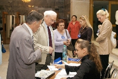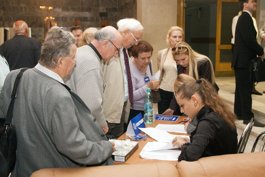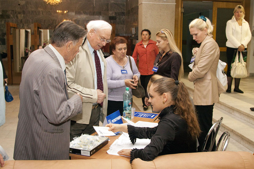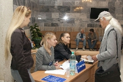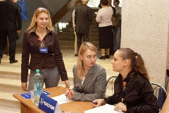 Театр начинается с вешалки, а конференция - с регистрации. Ветеранам станции и гостям нашего города быстро и слаженно помогает сориентироваться на местности молодая, но уже очень опытная команда девушек из ФЭИ.