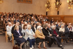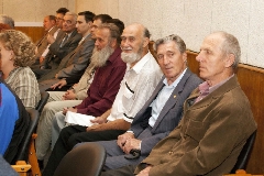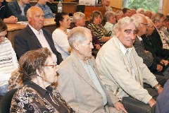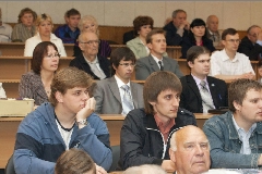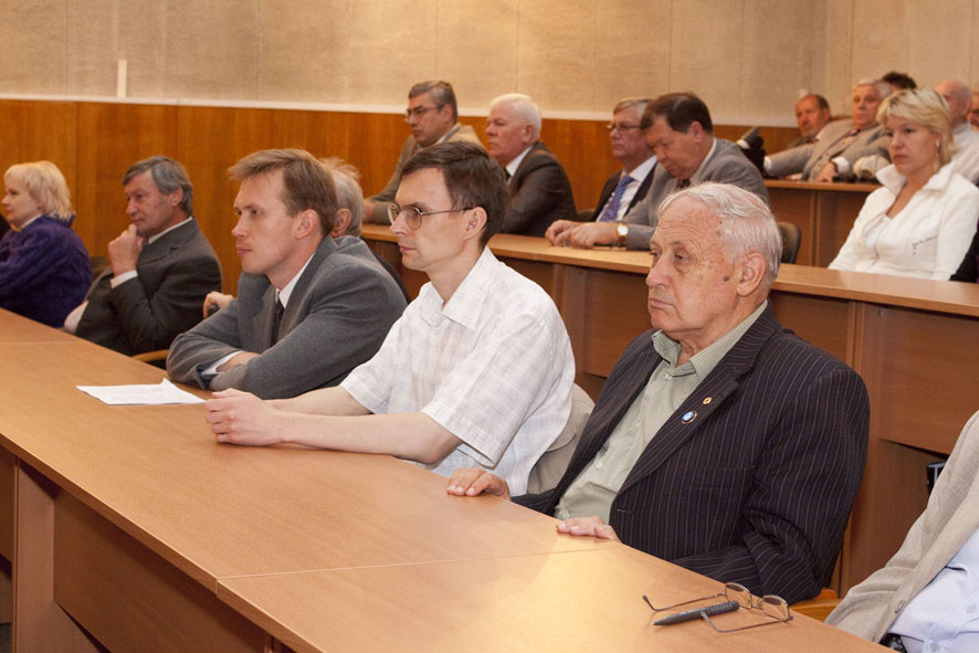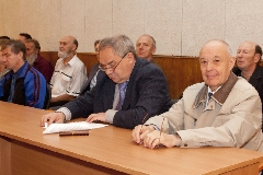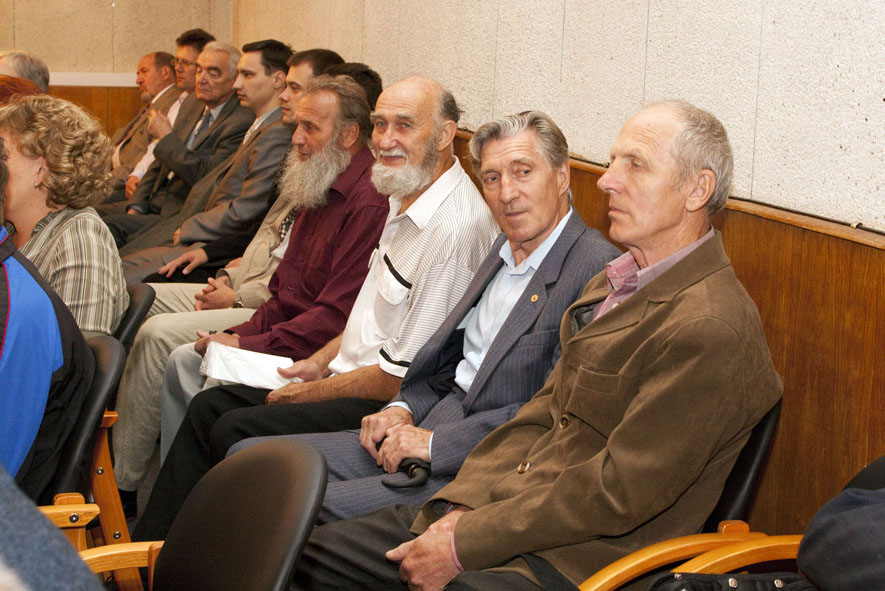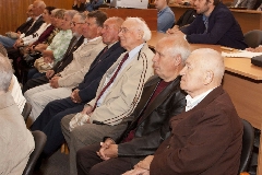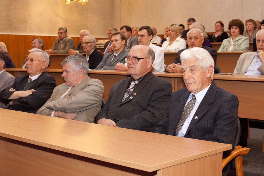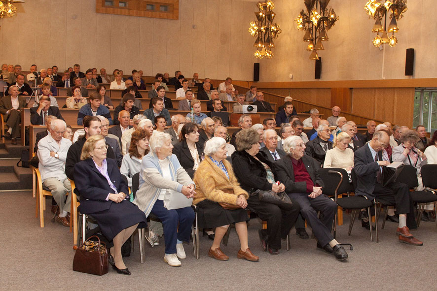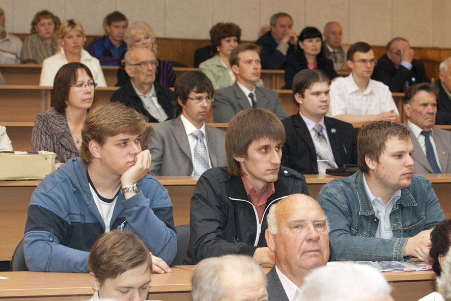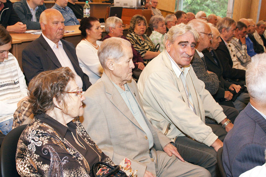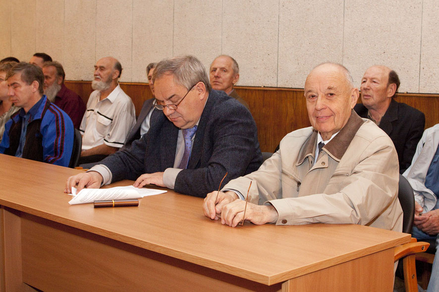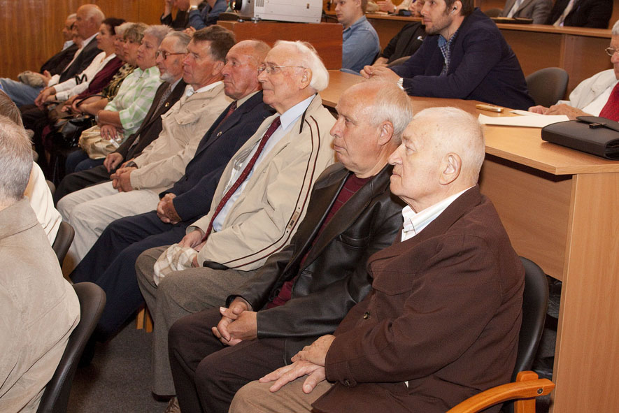 В зале - только свои. Пускачи, технологи, физики, эксплуатация, пенсионеры и действующие сотрудники ФЭИ и множества других организаций, без которых пуск Первой в мире был бы невозможен. Вместе с ветеранами сидят молодые специалисты и аспиранты ФЭИ.