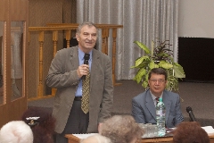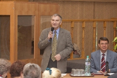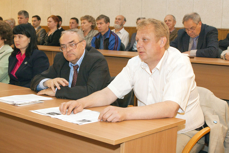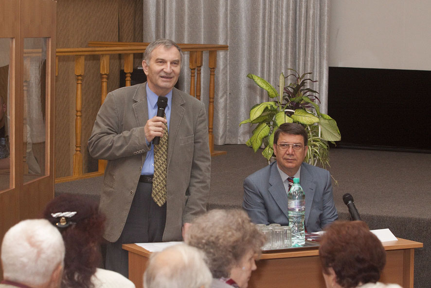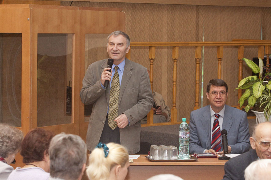 В президиуме торжественного заседания - генеральный директор ГНЦ РФ - ФЭИ Анатолий Васильевич Зродников и глава администрации Обнинска Николай Евгеньевич Шубин.