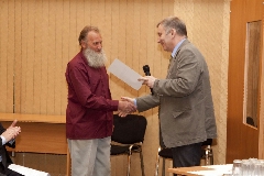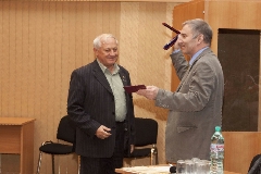 Приятная обязательная часть мероприятия - награждения. Кавалером высшего ведомственного знака отличия "Академик И.В.Курчатов" 1-ой степени стал советник дирекции ГНЦ РФ - ФЭИ Лев Кочетков.