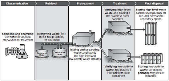 После прекращения наработки плутония в Ханфорде, DoE потратило более 12 млрд долларов на обращение с отходами и на поиски путей их окончательной утилизации. Министерство стартовало и сворачивало несколько различных программ, пока, наконец, не определилось со своим выбором - будет построен комплекс перерабатывающих установок под общим названием "Hanford Waste Treatment and Immobilization Plant".