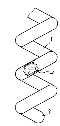 Стержни СУЗ не обязательно должны быть прямыми, считают авторы патента №4 010 070, выданного 1 марта 1977 года германской компании "Interatom Internatioinale Atomreaktorbau GmbH". Они защитили идею спирального стержня (1), содержащего поглотитель (1a). Стержень должен вкручиваться в активную зону, наподобие штопора - при этом твэлы будут отбрасываться от нижней части стержня (2) без механических повреждений.