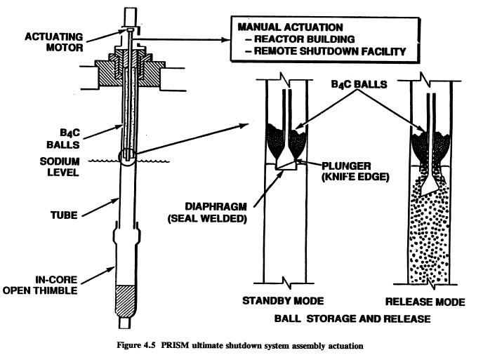 Система USS приводится в действие вручную оператором. В активной зоне имеется пустой объём, куда после прохождения сигнала на активацию USS сверху высыпаются шарики из карбида бора B4C.