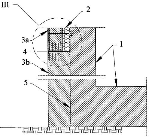 Авторы идеи предлагают разделить основные структуры реакторного здания (1) от внешней защиты с передвижной верхней частью (3a) слоем (2), который заполнен композитным материалом. В состав внешней защиты входит также нижняя фиксированная часть (3b), соединённая якорями с передвижной частью (3a) через плиту (4).