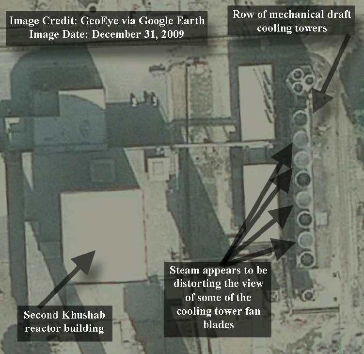"GoogleEarth недавно разместил спутниковые фотографии, полученные от "GeoEye" и показывающие ядерный объект Хушаб в Пакистане. На фотографиях, датированных 31.12.2009, можно различить облака пара, выходящие из части градирен второго реактора-наработчика плутония… Это может доказывать, что реактор "Хушаб-2" находится, как минимум, на стадии пусковой программы", - отмечают эксперты.