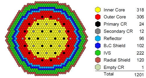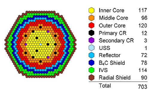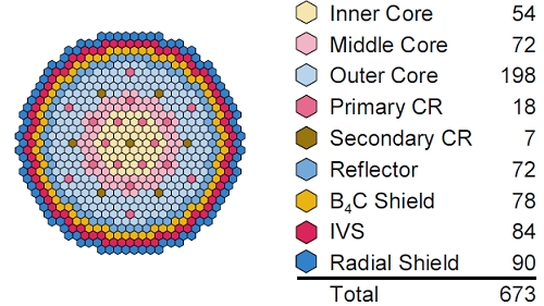Компоновка активной зоны KALIMER-600 в безызбыточном варианте.