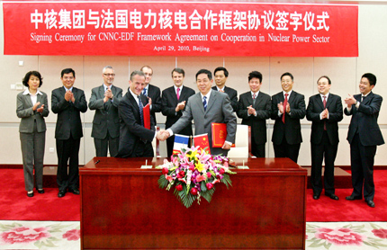 Компания CNNC и французская EDF заключили в Пекине соглашение о сотрудничестве, говорится в пресс-релизе, опубликованном на сайте китайского "малого атомного министерства" (CNNC) 29 апреля.