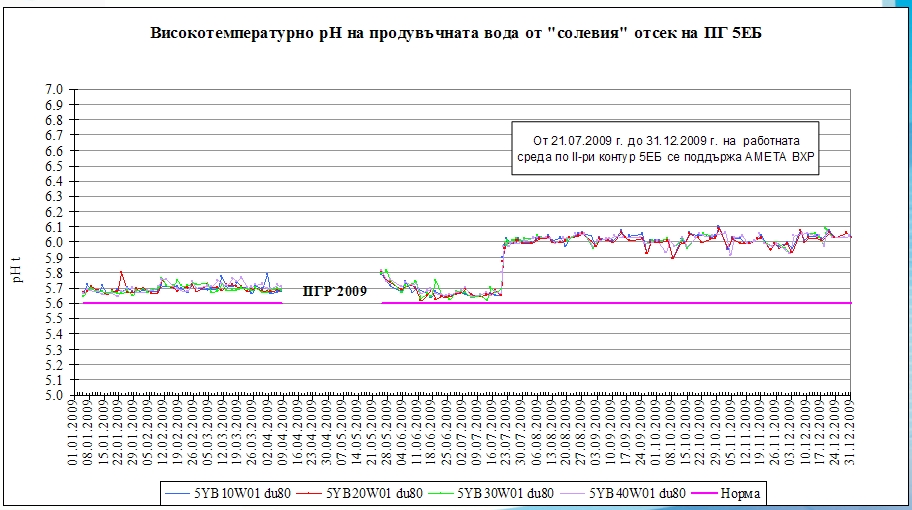 В продувочной воде из парогенератора значение pH (25°C) составляет не менее 9,4 единиц. Ожидаемые результаты от внедрения АМЕТА-ВХР таковы: