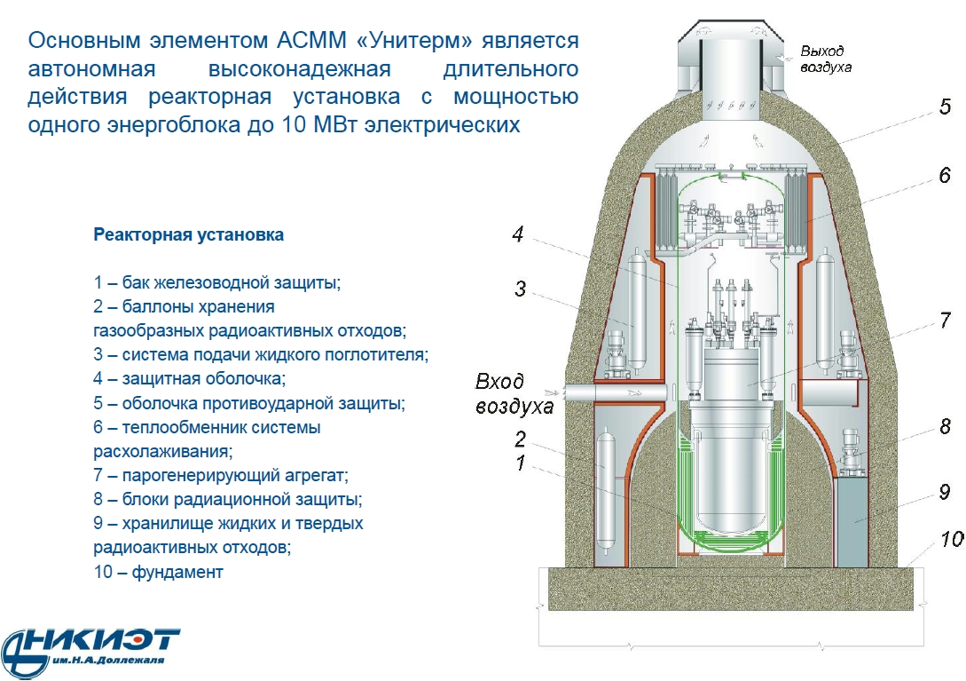 Владимир Шишкин: горячее всегда идёт вверх, а холодное - вниз AtomInfo.Ru, ОПУБЛИКОВАНО 26.01.2011 В Москве 11-12 ноября 2010 года в здании президиума РАН состоялась межотраслевая межрегиональная научно-техническая конференция "Перспектива развития системы атомных станций малой мощности в регионах, не имеющих централизованного электроснабжения" (АСММ-Регионам-2010). В кулуарах конференции на вопросы электронного издания AtomInfo.Ru любезно согласился ответить первый заместитель директора, главный конструктор транспортных и перспективных установок ОАО "НИКИЭТ" Владимир ШИШКИН. ПРОДОЛЖЕНИЕ ПОСЛЕ ФОТО Владимир Шишкин, фото AtomInfo.Ru ![]() "Унитерм" Владимир Александрович, стандартный первый вопрос. Расскажите, пожалуйста, о той установке, которую Вы докладывали на конференции "АСММ-Регионам-2010". Наш доклад был посвящён автономным, экологически безопасным атомным энергоисточникам малой мощности на базе РУ "Унитерм". Наиболее примечательное качество нашей установки - её необслуживаемость в течение длительного цикла действия. Я имею в виду необслуживаемость именно реакторной части. Персонал работает на оборудовании теплофикации либо электрогенерации. То есть, правильно ли мы поняли, что персонал у "Унитерма" всё-таки есть? Да, конечно. На атомной станции, как я уже говорил, имеется персонал, обслуживающий электрогенерирующий и теплофикационный блоки, вспомогательные системы и оборудование. Кроме того, должен быть персонал для обслуживания ТСО (технические средства охраны объекта). Да и собственно реакторная установка не остается "брошенной". За ней ведется постоянное наблюдение специалистами, например, из регионального центра обслуживания с помощью спутниковой связи. Далее, система управления реакторной установкой, а также её нейтронно-физические и теплотехнические характеристики обеспечивают следующее: при любом внештатном событии реакторная установка автоматически либо выводится из действия, либо переходит в режим горячего резерва. Первое происходит в том случае, если что-то не в порядке с реакторной частью, второе - при серьёзных сбоях в системах теплоснабжения или электрогенерации. Чуть-чуть о реакторе. Это водо-водяной реактор? Да, это реактор водо-водяной. По сути дела, это инновационно-эволюционный путь развития транспортных водо-водяных установок. По параметрам теплоносителя, по конструкционным материалам мы не предлагаем каких-либо революционных решений это эволюционный путь развития реакторов водо-водяного типа. Инновация заключается в плане новых конструктивно-компоновочных схемных решений. Новшества и изменения, которые мы предлагаем, направлены, в основном, на решение вопросов безопасности и нераспространения. На каком топливе будет работать "Унитерм"? Мы выбрали перспективное топливо для корабельных установок. Его можно назвать керметом. Это холодное топливо. Подобного рода топливо сейчас стоит в НИИАРе на испытаниях, и пока никаких неприятностей мы не видим, всё идет так, как мы рассчитывали. Другое новшество - интегральная компоновка. Я бы сказал: "Настоящая интегральная компоновка". Всё, абсолютно всё оборудование первого контура находится в едином плотном прочном корпусе парогенерирующего агрегата. В реакторной установке "Унитерм" есть обычные в водо-водяных установках барьеры безопасности - топливная композиция, о