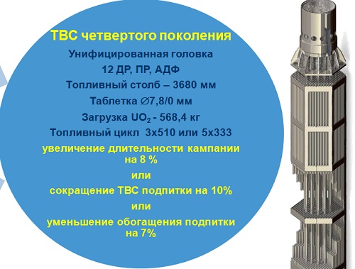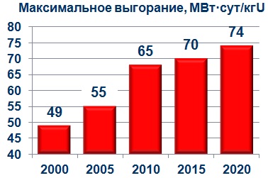 Алексей Долгов о топливе для ВВЭР AtomInfo.Ru, ОПУБЛИКОВАНО 19.06.2013 В ОКБ "Гидропресс" в мае состоялась VIII международная научно-техническая конференция "Обеспечение безопасности АЭС с ВВЭР". О перспективах улучшения топлива для реакторов ВВЭР участникам конференции рассказал исполнительный директор ДНТД ОАО "ТВЭЛ" Алексей ДОЛГОВ. Топливо для ВВЭР-440 Докладчик сообщил, что выпуск технического проекта топлива второго поколения для реакторов ВВЭР-440 с таблеткой 7,8/0 намечен на второй квартал 2013 года. В 2015 году должна начаться поставка такого топлива на чешскую АЭС "Дукованы". Геометрические характеристики твэлов для ВВЭР-440 ![]() Продолжаются работы по созданию регулирующих кассет РК третьего поколения без несущих трубок в каркасе. Планируется, что их опытная эксплуатация начнётся в 2015 году на Кольской АЭС. Корректировка технического проекта выполнена в 2012 году. Остановившись на перспективных топливных циклах для блоков с ВВЭР-440, докладчик отметил, что в 2015 году на венгерской АЭС "Пакш" планируется внедрить 15-месячный цикл. Топливо для ВВЭР-1000/1200/1300 Перед разработчиками топлива для отечественных реакторов большой мощности стоит задача повышения ураноёмкости, длины кампании и глубины выгорания. К 2020 году необходимо располагать топливом, способным выдерживать максимальное выгорание 74 МВт×сут/т и длительность кампании 680 эффективных суток. Максимальное выгорание ![]() Длительность кампании ![]() Докладчик перечислил проекты кассет, которые появятся в ближайшем или обозримом будущем. В частности, это ТВС-4А и ТВС-4М (кассеты четвёртого поколения) с таблеткой 7,8/0 мм и высотой активной зоны 3680 мм. Разработка технических проектов твэлов, твэгов и ТВС закончена в 2012 году. Расчётно-экспериментальное обоснование твэлов и твэгов будет проходить до 2015 года, после чего планируется поставка пилотной партии. Промышленная эксплуатация топлива четвёртого поколения должна начаться в 2017 году. Топливо IV поколения ![]() Кассета ТВС-2006 предназначается для реакторов ВВЭР-1200. Высота активной зоны у неё 3730 мм. В 2012 году изготовлена первая топливная загрузка блока №1 Нововоронежской АЭС-2. До 2015 года предполагается провести усовершенствование конструкции кассеты, в том числе, за счёт внедрения модифицированных циркониевых сплавов. Кассета ТВС-ТОИ будет загружаться в новые блоки с реакторами ВВЭР-ТОИ. Высота активной зоны у неё также 3730 мм. Разработка технических проектов твэлов, твэгов, ПЭЛ и ТВС выполнена в 2012 году. До 2017 года будет вестись усовершенствование конструкции, а также обоснование работоспособности при маневрировании 100-50-100%. После ТВС-ТОИ наступит время новой перспективной кассеты ТВС-XXI. Обогащение урана в ней будет поднято до 7%. Предполагается переход на эрбиевые поглотители и новые конструкционные материалы. Разработка технических проектов твэлов с обогащением до 7% и новой ТВС будет вестись до 2017 года, разработка инновационных конструкционных материалов для реакторных испытаний - до 2020 года. Ближайшие направления развития Докладчик перечислил ближайшие направления развития топлива для реакторов ВВЭР: - увеличение загрузки топлива в ТВС за счёт использования таблетки 7,8/0 мм для всего парка ВВЭР; - внедрение интенсификаторов теплообмена; - подъём мощности активной зоны до 107-110% от номинальной для реакторов ВВЭР-1000; - увеличение длины ПС СУЗ; - у