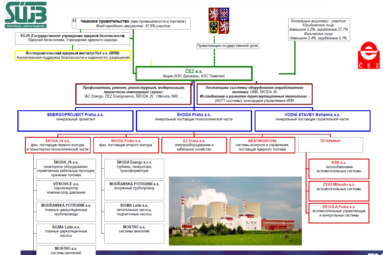 Ян Здебор о технологиях ВВЭР в Чешской Республике AtomInfo.Ru, ОПУБЛИКОВАНО 06.08.2013 В ОКБ "Гидропресс" в мае состоялась VIII международная научно-техническая конференция "Обеспечение безопасности АЭС с ВВЭР". О развитии технологии ВВЭР в Чешской Республике рассказал технический советник генерального директора "Шкода-JS" Ян ЗДЕБОР. Первый этап Докладчик в начале выступления процитировал слова А.Комарека, главного инженера "Шкоды-JS" в 60-70-ых годах. "Предпосылки для возникновения чехословацкого атомного машиностроения были созданы 23.4.1955 года подписанием соглашения между тогдашней ЧССР и СССР о помощи при развитии мирного использования атомной энергии". "Его историю можно наглядно расчленять на период исследования и строительства опытнoй тяжёло-водяной электростанции в годах 1956 - 1972 и на период усваивания и строительства промышленных водо-водяных электростанций советского типа ВВЭР от 1970 года до сих пор". На первом этапе в Чехословакии активно строились исследовательские и учебные ("школьные") реакторы. Это реакторы ВВР-С (с 1990 года - ЛВР-15), ТР-O (с 1982 года - ЛР-O), ВР-1. На предприятии "Шкода-Пльзень" был построен исследовательский реактор ШР-0. Он приступил к работе в 1971 году и был закрыт в 1992 году. Реактор ШР-0 (или в другом написании SR-O) имел мощность 100 Вт. В 1975 году её подняли до 2 кВт. Он был спроектирован, изготовлен и внедрён в эксплуатацию "Шкодой" и стал вторым чехословацким реактором и первым реактором, сделанным пльзенским предприятием. Он предназначался для обеспечения экспериментальных работ при разработке АЭС "А-1" и для пусконаладочных работ. Исходно он носил название ШР-0А и работал советском топливе ЭК-10. Впоследствии реактор переориентировали на нужды программы ВВЭР, перевели на советское топливо ИРТ-М и переименовали в ШР-0. Пульт управления ШР-0 ![]() АЭС "A-1" Важный толчок развитию атоммаша в ЧССР дал проект по строительству тяжёловодной АЭС "A-1", или "Богунице A-1". Несмотря на то, что опыт эксплуатации станции вышел неудачным (в 1972 году пуск блока, в 1976 году первая авария, в 1977 году вторая, и в 1979 году решение правительства о закрытии), чехословацкие заводы получили неоценимый опыт. Пан Здебор перечислил ряд работ, выполнявшихся по проекту A-1 на предприятиях ЧССР. Исследованием сталей и технологии сварки занимались "Шкода" и "Витковице". За изготовление корпуса, ВКУ и сосуда тяжёлой воды отвечала "Шкода". Кроме того, она же занималась перегрузочной машиной и турбогенераторами второго контура. ГЦНы для станции делались на "ЧКД Прага". ГЦТ и клапана - на "СИГМА Модржаны". Парогенераторы, ёмкости и система охлаждения тяжёлой воды выпускались в Брно. Неядерные части топливных кассет делались в Дубнице, а электрооборудование - на электротехническом заводе в Праге. Докладчик процитировал слова Яна Нойманна, первого председателя чехословацкой комиссии по использованию атомной энергии: "Технически и экономически самым значительным результатом исследовательских и проектно-конструкторских работ при развитии оборудования АЭС "А-1" для Чехословакии было, что заводы тяжёлой промышленности освоили производство материалов и оборудования для атомной энергетики, которое нуждается в чрезвычайно высоких требованиях к качеству и надёжности ... изготовление которого освоило немного самых развитых стран мира". К технологиям ВВЭР В конце 60-ых - начале 70-ых 