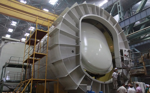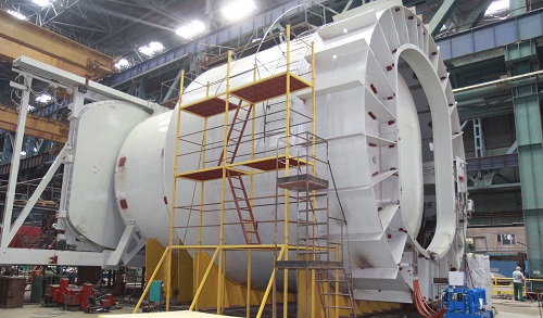 Атомэнергомаш завершает изготовление транспортного шлюза для Нововоронежской АЭС-2 Атомэнергомаш, ОПУБЛИКОВАНО 25.08.2013 Волгодонский филиал ЗАО "АЭМ-технологии" (входит в машиностроительный дивизион Росатома - Атомэнергомаш) завершает изготовление транспортного шлюза, который предназначен для строящегося первого блока Нововоронежской АЭС-2. ПРОДОЛЖЕНИЕ ПОСЛЕ ФОТО Изготовление шлюза, фото Атомэнергомаш ![]() На сегодня завершена контрольная сборка всей конструкции, включая ворота и механизмы их перемещения. Подключена штатная и технологическая гидравлические системы, завершается монтаж системы управления. Проведены испытания на работоспособность механизмов перемещений ворот и на герметичность клапанов камеры шлюза. В конце июля были проведены испытания рельсового пути с подъемными мостиками, входящими в состав изделия. Изготавливаемый транспортный шлюз представляет собой горизонтально расположенную цилиндрическую камеру диаметром свыше 9 метров и длиной 14 метров, герметично запираемую с двух сторон полотнами ворот. Внутри камеры расположены механизмы перемещения ворот, рельсовый путь для грузовой платформы и системы запирания и герметизации камеры шлюза. Установленный при строительстве АЭС в проектное положение транспортный шлюз, обеспечивает перемещение грузов и оборудования в реакторный зал из цеховой зоны АЭС, не нарушая при этом герметичности реакторного отделения. Автоматизированная система управления поочередно открывает и закрывает ворота шлюза при перемещении грузовой платформы или оборудования из одной зоны в другую. Общий вес изделия составляет более 350 тонн. В конструкции шлюза применены уникальные технические решения, обеспечивающие надежность работы изделия и позволяющие защитить персонал станции и окружающей среды от радиоактивного воздействия во время осуществления планово-предупредительных ремонтов и замены ядерного топлива. Волгодонское предприятие ЗАО "АЭМ-технологии" имеет опыт изготовления транспортно-технологического оборудования для АЭС. В 2004 году на заводе было изготовлено два транспортных и два шлюза для персонала Тяньваньской АЭС в Китае, а также комплект из двух шлюзов для персонала и гермодверей для Иранской АЭС "Бушер". После проведения приёмо-сдаточных испытаний, шлюз будет подготовлен к отгрузке водным транспортом на Нововоронежскую АЭС-2. Технические и логистические возможности завода позволяют осуществить отгрузку этого крупногабаритного изделия в максимальной степени готовности. Планируется поставка изделия полностью в сборе за исключением внутренних ворот. Транспортировка шлюза станет сложной и уникальной операцией, но это в конечном итоге позволит сократить сроки монтажа оборудования на станции. Транспортный шлюз, фото Атомэнергомаш ![]() ЗАО "АЭМ-технологии" было создано в 2007 г. в структуре ОАО "Атомэнергомаш". В управлении ЗАО "АЭМ-технологии" находятся головной инжиниринговый офис "АЭМ-технологии" в г. Санкт-Петербург, ОАО "Петрозаводскмаш" (г. Петрозаводск), Филиал ЗАО "АЭМ-технологии" в г. Волгодонск. Спектр производимого оборудования постоянно расширяется и включает оборудование для атомной отрасли, тепловой энергетики, газнефтехимии. Основные направления деятельности компании: комплексное производство атомных реакторов и оборудования реакторно