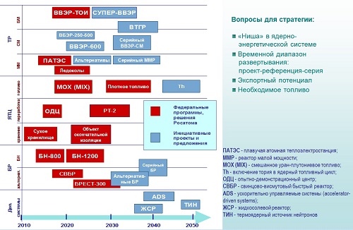 Стратегия по-курчатовски AtomInfo.Ru, ОПУБЛИКОВАНО 02.10.2013 Мы завершаем цикл публикаций по материалам VIII международной научно-технической конференции "Обеспечение безопасности АЭС с ВВЭР", прошедшей в ОКБ "Гидропресс" в мае 2013 года. На пленарном заседании конференции была широко представлена стратегия развития атомной энергетики России до 2050 года, разработанная в Курчатовском институте. С докладом, подготовленным большой экспертной группой, на подольской конференции выступил Виктор Сидоренко. Атомная отрасль России сегодня более сосредоточена на достижение коммерческих эффектов в срок до 2030 года. Но для успешного развития необходимо заглядывать далее, как минимум, до 2050 года. Докладчик особо подчеркнул, что приводимые им цифры не являются прогнозами. Прогнозы обладают тенденцией никогда не выполняться. Поэтому более важно установить для себя стратегические рамки. Цели и задачи Энергетическая отрасль является индустриальной основой глобальной модернизации отечественной промышленности. В свою очередь, атомная энергетика - непременная составляющая энергообеспечения, "как в силу масштабного фактора, так и в силу сохранившихся квалифицированной инженерно-технической базы и весомой научной школы". Атомная энергетика является высокотехнологичной сферой, и её активное развитие послужит локомотивом перехода страны к инновационному пути развития. Авторы курчатовской стратегии формулируют следующие цели, достижение которых стратегия должна обеспечить: - формирование атомного комплекса как энергетической базы устойчивого развития страны в стратегической перспективе; - обеспечение геополитических интересов страны на мировом атомном энергетическом рынке в области реакторостроения и услуг замкнутого топливного цикла; - создание структуры атомного энергопромышленного комплекса, гарантированно обеспечивающего потребности атомной энергетики в топливе на длительную перспективу, ориентируясь на доступные природные ресурсы, и способного обеспечить приемлемое обращение с ОЯТ и РАО. Соответственно, приоритетные задачи развития атомной отрасли России должны включать в себя обеспечение к 2050 году генерации на АЭС до 20% от общего объёма, замыкание топливного цикла, развитие неэлектрического компонента после 2030 года в объёме 30% потребностей, а также создание системы обращения с РАО, обеспечивающей их надёжную изоляцию, и разработка промышленных технологий вывода из эксплуатации. Технологии В качестве базовых расчётных параметров в докладе были приведены следующие цифры. В 2030 году установленная мощность российских блоков (с учётом экспорта!) по максимальному сценарию должна составлять 100 ГВт(эл.), причём максимальный сценарий здесь соответствует так называемому "умеренному" сценарию развития атомной энергетики от МАГАТЭ. К 2050 году можно говорить о росте этого показателя вплоть до 300 ГВт(эл.). Докладчик напомнил, какие существующие и перспективные реакторные технологии будут в нашем распоряжении в первой половине XXI века. Прежде всего, это реакторы ВВЭР, а также их эволюционное и инновационное развитие. Далее, это БН - быстрые натриевые реакторы. Сюда же были причислены реакторы средней мощности на базе ВВЭР и судовых реакторов, реакторы малой мощности для локального и местного энергоснабжения, а также реакторы типа ВТГР. И