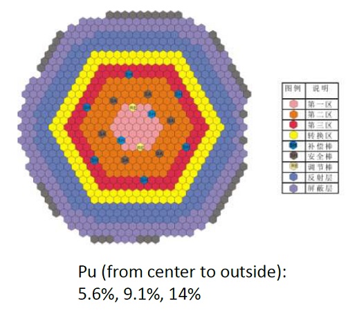 Перспективные проекты Вслед за CEFR в Китае должны появиться новые быстрые реакторы с натриевым теплоносителем. В институте CIAE разрабатывают проект демонстрационного реактора CFR-600, пуск которого может состояться в 2023 году. Проект CFR-600 учитывает как требования к четвёртому поколению ядерных реакторов, так и уроки Фукусимы. Его тепловая мощность составит 1500 МВт, электрическая мощность - 600 МВт(эл.). Значение к.п.д. достигнет 41%. Проектный срок службы - 60 лет. Топливом для CFR-600 послужит MOX, прогнозируемая максимальная глубина выгорания - 100 МВт×сут/кг. Значение КВ составит 1,2. К активным системам безопасности добавят пассивные дополнения, под реактором установят ловушку расплава, усилят контейнмент. В концептуальном виде с проектом нового реактора можно будет ознакомиться через год, а предварительный проект появится в декабре 2015 года. Одновременно Китай сохраняет интерес к проекту реактора с бегущей волной, предлагаемому американской компанией "Terra Power". Сотрудники детища Билли Гейтса установили первые контакты с китайскими специалистами в 2009 году. Правительство КНР дало поручение корпорации CNNC создать рабочую группу для оценки перспектив реакторов TWR с бегущей волной. По мнению группы, их практическая реализация станет возможной, "если будет освоена технология металлического топлива и создано ключевое оборудование".