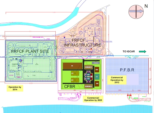 В Индии началось строительство завода по переработке ОЯТ быстрых натриевых реакторов AtomInfo.Ru, ОПУБЛИКОВАНО 13.07.2014 Индия приступила к строительству завода FRFCF по переработке ОЯТ быстрых натриевых реакторов, пишет "Business Standard". Завод расположен на площадке Калпаккам рядом с сооружаемым демонстрационным быстрым натриевым реактором PFBR-500. На той же площадке будут построены и два коммерческих быстрых натриевых реактора CFBR-500. Стоимость завода FRFCF - 9600 кроров рупий (1,6 миллиардов долларов). Завершение строительства планируется на 2018 год, начало эксплуатации на 2019 год. Физпуск реактора PFBR-500 ожидается в этом году. Сейчас на блоке производится нагрев натрия перед перекачкой в баки первого контура. Разрешение регулирующих органов на начало строительства двух блоков с CFBR-500 пока не получено. Размещение основных быстрых объектов на АЭС "Калпаккам". ![]()
