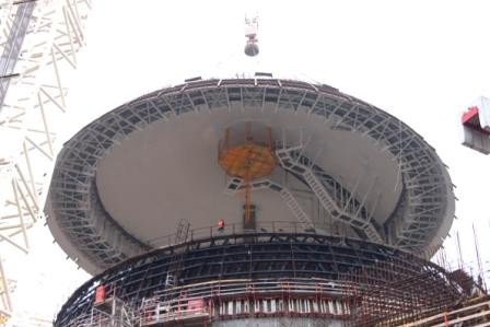 На Нововоронежской АЭС-2 установлен купол реакторного здания энергоблока №2 Управление коммуникаций АО Атомэнергопроект, ОПУБЛИКОВАНО 15.11.2014 На Нововоронежской АЭС-2 (заказчик - ОАО "Концерн Росэнергоатом", генеральный проектировщик и генподрядчик - АО "Атомэнергопроект", Москва) произведена установка на штатное место купола реакторного здания энергоблока №2. ПРОДОЛЖЕНИЕ ПОСЛЕ ФОТО Фото Атомэнергопроект ![]() 14 ноября в проектное положение (с отметки +51,7 до отметки +61,7) установили верхнюю часть купола весом более 200 тонн. Установка купола на штатное место предварялась укрупнительной сборкой его составных элементов (армоблоков), что позволило обеспечить высокое качество монтажных работ. На нулевой отметке была проведена не только сборка металлоконструкций купола, но также монтаж технологических систем - в частности, элементов систем безопасности АЭС. Монтаж купола ведут специалисты ОАО "Энергоспецмонтаж" (входит в контур управления АО "Атомэнергопроект") и ООО "Трест РосСЭМ". Установка купола реакторного здания позволит активизировать работы по отделке помещений, облицовке конструктивов внутри гермообъёма и создать зону "чистого монтажа", что является обязательным условием для начала монтажа корпуса реактора. К бетонированию купола внутренней защитной оболочки строители приступят в марте следующего года. Двойная защитная оболочка здания реактора, частью которой является купол, исключает выход радиоактивности в окружающую среду и служит физической защитой от природных и техногенных внешних воздействий, включая землетрясение, ураганы, падение самолета. По словам первого заместителя генерального директора АО "Атомэнергопроект" Леонида Егорова, установка купола - знаковое событие в процессе возведения Нововоронежской АЭС-2. "С завершением операции по монтажу купола внутренней защитной оболочки второго энергоблока вся станция приобретает завершенный вид". АО "Атомэнергопроект" (www.aep.ru) - предприятие госкорпорации "Росатом" (www.rosatom.ru), инжиниринговая компания. С 17 октября 2014 года единоличным исполнительным органом АО "Атомэнергопроект" является АО "НИАЭП". Ключевые слова: АЭС, Россия, Нововоронежская АЭС, Пресс-релизы Другие новости: На Ростове-3 начата загрузка топлива В реактор загружены первые сборки. Подписан договор генподряда на сооружение МБИР Генеральным подрядчиком выбрана компания «Уралэнергострой». 20-ый полёт неопознанных дронов над ядерными объектами Франции Станции принимают меры "технического характера" для противодействия полётам. |