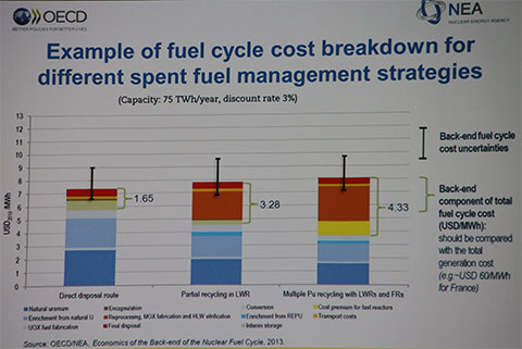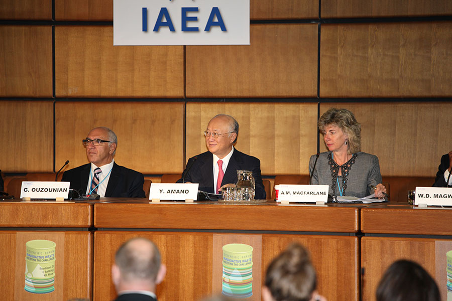 Научный форум МАГАТЭ - проблема РАО AtomInfo.Ru, ОПУБЛИКОВАНО 24.09.2014 Научный форум 58-ой сессии генеральной конференции МАГАТЭ, проходящей в Вене, посвящён проблеме радиоактивных отходов. Во вступительной речи генеральный директор МАГАТЭ Юкия Амано подчеркнул важность этой проблемы. В свою очередь, следующий докладчик, председатель национального ядерного агентства Индонезии г-н Джарот Виснуброто (Djarot Wisnubroto) отметил, что бурному развитию и процветанию ядерной отрасли мешает именно эта досаднейшая проблема. После сделанных программных заявлений научная сессия приступила к более конкретному обсуждению проблемы РАО. Что хранят французы Доклад международного директора национального агентства по управлению радиоактивными отходами Франции Жерара Узуньяна (Gerard Ouzounian) был посвящён французской концепции обращения с радиоактивными отходами. Сначала он напомнил о классификации МАГАТЭ, согласно которой отходы разделяются на: - отходы высокого уровня, HLW (высокоактивные), которые подлежат глубокому захоронению в геологических формациях; - отходы промежуточного уровня, ILW-LL (среднеактивные), которые подлежат захоронению на промежуточной же глубине; - отходы низкого уровня, LLW-LL (низкоактивные), которые подлежат захоронению близко к поверхности с инженерными барьерами; - отходы особо низкого уровня, VLLW (очень низкоактивные), которые подлежат захоронению близко к поверхности (могут быть прикопаны в траншеях); - очень короткоживущие отходы, LILW-SL, которые после недолгой выдержки в специализированных хранилищах радиоактивными отходами больше не являются; - освобождённые от контроля отходы (exempt waste) - отходы, соответствующие критериям вывода из-под регулирующего контроля. Основная идея обращения с РАО одна – копить и хранить. Для высокоактивных надо искать стабильную скальную породу, копать глубоко и хранить там, для среднеактивных можно копать не так глубоко и скалу не искать, для низкоактивных можно копать совсем мелко, для особонизкоактивных можно совсем не копать, где получили, там же можно и складывать. Но какие объёмы РАО нужно хранить? По французским оценкам, АЭС даёт 100 кубометров отходов и 20 тонн ОЯТ в год и ещё 20 тысяч кубометров отходов через 50 лет при выводе из эксплуатации. После переработки из 20 тонн ОЯТ получится примерно 2,5 кубометра ВАО и 3 кубометра САО. Прогноз на 2030 год по сравнению с 2010 годом даёт двукратное увеличение объёма радиоактивных отходов, причём объём высокоактивных увеличивается вдвое, объём среднеактивных – незначительно, низкоактивных – менее, чем вдвое, короткоживущих – незначительно, очень низкоактивных – почти вчетверо. ![]() Что требуют американцы Эллисон Макфарлайн из комиссии по ядерному регулированию США рассказала участникам форума о концепции американского регулятора по отношению к РАО. Концепция включает в себя пять пунктов, а именно: - ядерные отходы требуют аккуратного обращения; -лучше иметь план обращения с радиоактивными отходами в начале реализации программы ядерной энергетики; - неопределённость с окончанием жизненного цикла отходов создаёт дополнительные проблемы в области безопасности, которые обязательно придётся решать; - обеспечить требуемый уровень безопасности может только сильный независимый регулятор; - политика или продвижение ядерной энергетики определяются общественным 