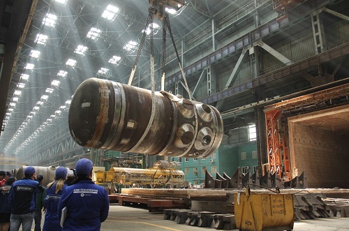 Атомэнергомаш завершил сварку корпуса реактора для Белорусской АЭС Медиа-центр АО Атомэнергомаш, ОПУБЛИКОВАНО 14.05.2015 В Волгодонском филиале АО "АЭМ-технологии" (входит в машиностроительный дивизион Росатома - Атомэнергомаш) завершён ключевой этап по сварке замыкающего кольцевого шва, соединяющего две половины реактора для первого блока Белорусской АЭС. ПРОДОЛЖЕНИЕ ПОСЛЕ ФОТО Корпус реактора, фото Атомэнергомаш ![]() "Можно говорить о том, что успешно пройден ещё один важный этап в производстве реактора для Белорусской АЭС. Все контрольные результаты показали стопроцентное качество сварного шва. Сейчас крайне важно поддерживать набранный темп, обеспечив своевременное выполнение оставшихся производственных операций и отгрузку оборудования заказчику", - отметил генеральный директор АО "Атомэнергомаш" Андрей Никипелов. Ранее была осуществлена сборка верхнего и нижнего полукорпусов реактора общей массой 320 тонн. Затем в течение девяти дней выполнялась автоматическая сварка при непрерывном подогреве зоны сварного шва. Температура нагрева составила более 200°C. После проведения сварочных работ весь корпус нагрели до 280°C и отправили в печь на термообработку для получения требуемых механических свойств металла. "Успешное завершение сварки кольцевого шва корпуса реактора для Белорусской АЭС - безусловная заслуга всего коллектива АО "АЭМ-технологии" и очередной важный этап возрождения предприятия в контуре Госкорпорации "Росатом", - заявил генеральный директор АО "АЭМ-технологии" Евгений Пакерманов. Параллельно завершается изготовление внутренних устройств реактора. На сегодняшний день специалисты провели работы по установке корпуса шахты в стенд, имитирующий корпус реактора, идёт выполнение мероприятий для контрольной сборки внутрикорпусных устройств реактора: шахты, колец выгородки, блока защитных труб, каркасных и опорных элементов. Реактор представляет собой вертикальный цилиндрический корпус с эллиптическим днищем, внутри которого размещается активная зона и внутрикорпусные устройства. Сверху реактор герметично закрыт крышкой с установленными на ней приводами механизмов и органов регулирования и защиты реакторов и патрубками для вывода кабелей датчиков внутриреакторного контроля. Крепление крышки к корпусу осуществляется шпильками. В верхней части корпуса имеются патрубки для подвода и отвода теплоносителя, а также патрубки для аварийного подвода теплоносителя при разгерметизации контура. Белорусская АЭС - проект по строительству атомной электростанции типа АЭС-2006, который реализуется в 18 км от Островца (Гродненская область, Республика Беларусь). Проект реакторной установки станции разработан входящим в "Атомэнергомаш" АО "ОКБ Гидропресс", которое осуществляет авторский надзор и конструкторское сопровождение. Первый энергоблок планируется ввести в эксплуатацию в 2018 году, второй - в 2020 году. Ключевые слова: Атомное машиностроение, Восточная Европа, Белоруссия, Пресс-релизы Другие новости: АО "ГНЦ НИИАР" получил лицензию на сооружение МБИР Летом текущего года планируется приступить к работам по бетонированию фундаментной плиты Главного здания МБИР. Начало строительства замещающих мощностей Смоленской АЭС перенесено с 2016 на 2019 год Пуск первого энергоблока в 2027 году. PFBR выйдет на критику в конце июл