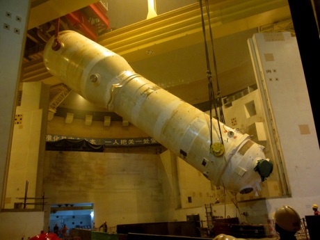 На Тайшане-2 установлен первый китайский ПГ для EPR AtomInfo.Ru, ОПУБЛИКОВАНО 26.05.2015 Первый из четырёх парогенераторов на блоке №2 АЭС "Taishan" (Китай) с реактором EPR установлен в проектное положение, пишет "World Nuclear News". ПРОДОЛЖЕНИЕ ПОСЛЕ ФОТО Монтаж ПГ на Тайшане-2, фото CNEC ![]() Это первый парогенератор для EPR, изготовленный на китайских предприятиях. Операция по установке парогенератора прошла 22 мая 2015 года и заняла более шести часов. Парогенераторы для первого блока АЭС "Taishan" были изготовлены на французском заводе "Chalon-St Marcel" группы AREVA. Парогенераторы для второго блока станции изготовила китайская компания "Shanghai Electric". Ключевые слова: Парогенераторы, Азия, Китай, EPR-1600 Другие новости: Блок работает на 75% своей тепловой мощности и 675 МВт - электрической. Канадская компания поставит арматуру для ACPR-1000, "Драконов" и ВТГР Поставки клапанов намечены на 2016-2018 годы. Новый директор - Иван Сидоров. |