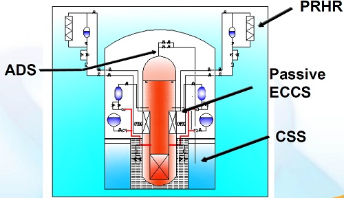 Преимущества по безопасности Разработчики проекта ACP-100 отмечают следующие его важные свойства с точки зрения безопасности. Стоит отметить, что большинство из них не является чем-то исключительным и характерно и для многих других проектов АСММ. В реакторной установке отсутствуют трубопроводы большого диаметра - максимальный диаметр составляет от 5 до 8 см. Таким образом, в ACP-100 не может быть аварии типа LBLOCA (потеря теплоносителя через большой разрыв). В первом контуре ACP-100 имеется значительный запас воды, что важно при тяжёлых авариях. Общая активность, накапливаемая в ACP-100 за время кампании, значительно - на порядок - меньше, чем аналогичный показатель для PWR большой мощности. Соответственно, меньше и активность, которая может попасть в окружающую среду при аварии. Тем не менее, в проекте предусмотрены необходимые барьеры безопасности. Расположение оборудования в первом контуре ACP-100 благоприятно для организации охлаждения за счёт естественной циркуляции. Меньшая мощность реактора означает и меньшее остаточное тепловыделение после останова, что облегчает его отвод пассивными системами. Реактор и бассейн выдержки ACP-100 находятся ниже уровня земли, на отрицательных отметках. Такое решение, по мнению разработчиков, должно пойти на пользу при различных внешних воздействиях. Кроме того, это позволит уменьшить выбросы при аварии. Демонстрационная площадка Площадка для строительства демонстрационной станции с двумя реакторами ACP-100 в Китае выбрана. Это площадка Путянь (Putian), расположенная вблизи одноимённого городского округа в провинции Фуцзянь - см. карту на рисунке ниже. ![]() Дальнейшие перспективы В настоящее время в корпорации CNNC ведутся работы над проектом под условным названием ACP-100+. Поставлена задача сделать его более безопасным, экономичным и гибким в применении по сравнению с ACP-100. Проект ACP-100+ предназначается для генерации электроэнергии, производства тепла и пресной воды с размещением как на морском побережье, так и в глубине страны. Тепловая мощность ACP-100+ составит 385 МВт(т), электрическая мощность - 120 МВт(эл.). Проектный срок службы, частота перегрузок и состав активной зоны не изменятся по сравнению с проектом-предшественником. Среди основных принципиальных отличий ACP-100+ от ACP-100 можно выделить внутреннее размещение компенсатора объёма и приводов СУЗ, уход от регулирования борной кислотой (только стержни СУЗ и СВП), а также наличие полностью залитого водой компактного стального контейнмента. Кроме того, в ACP-100+ предполагается дальнейшее упрощение проекта и сокращение количества используемого оборудования. Схема ACP-100+ ![]() Ключевые слова: Малая энергетика, Азия, Китай, Статьи Другие новости: Корпус реактора энергоблока №4 Ростовской АЭС доставлен на стройплощадку После прохождения входного контроля и получения разрешения Ростехнадзора корпус реактора поступит в зону монтажа реакторного отделения. По поводу высказываний Юрия Недашковского. Ростовская АЭС: смонтированы баки аварийного запаса технической воды группы А Баки установлены на отметке +33,6. |