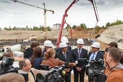 МБИР - первый бетон Пресс-служба АО Наука и инновации, ОПУБЛИКОВАНО 12.09.2015 Торжественная церемония заливки первого бетона состоялась на площадке строительства многоцелевого исследовательского реактора на быстрых нейтронах МБИР (АО "ГНЦ НИИАР", г. Димитровград) 11 сентября 2015 года. В мероприятии приняли участие: - заместитель генерального директора - директор Блока по управлению инновациями госкорпорации "Росатом" Вячеслав Першуков, - губернатор Ульяновской области Сергей Морозов, - депутат Государственной Думы Федерального Собрания Российской Федерации, председатель совета ядерно-инновационного кластера города Димитровграда Валерий Язев, - генеральный директор АО "Наука и инновации" Алексей Дуб, - директор АО "ГНЦ НИИАР" Александр Тузов, - руководство генерального подрядчика ООО "Управляющая компания "Уралэнергострой", - руководители организаций ГК "Росатом", участвующих в реализации проекта МБИР. "Это событие непростое, знаковое. НИИАР возрождает своё первенство не только в России, но и во всём мире. Руководство "Росатома" давно приняло решение на всех уровнях о том, что этот реактор (МБИР) не просто для России, но для развития мировой энергетики будущего. Уверен, что мы успешно завершим строительство МБИР и будем отмечать пуск самого мощного в мире исследовательского реактора",- сказал В.А.Першуков в ходе торжественной церемонии. "Реактор МБИР, самый мощный из действующих, проектируемых и сооружаемых быстрых исследовательских реакторов в мире, откроет новую страницу в истории нашего института, расширит спектр экспериментальных возможностей отрасли и создаст базу для будущего международного центра исследований в обеспечение долгосрочного устойчивого развития мировой атомной энергетики в будущем", - отметил директор АО "ГНЦ НИИАР" Александр Тузов. Лицензия на сооружение реактора МБИР выдана АО "ГНЦ НИИАР" (находится под управлением АО "Наука и инновации") 8 мая 2015 года сроком на десять лет. Генеральный подрядчик ООО "Управляющая компания "Уралэнергострой" уже завершил на площадке строительства МБИР работы подготовительного периода. С началом бетонирования фундаментной плиты реакторного блока дан старт работам основного периода строительства реактора МБИР, которые планируется завершить к 2020 году. Предполагается, что исследовательская ядерная установка МБИР заместит быстрый исследовательский реактор БОР-60, построенный почти полвека назад и успешно эксплуатируемый все эти годы на территории АО "ГНЦ НИИАР". Ввод в эксплуатацию реактора МБИР обеспечит существенное расширение экспериментальных возможностей российской атомной отрасли и заложит технологическую базу для международного центра исследований МБИР, создание которого по инициативе госкорпорации "Росатом" поддерживается правительством Российской Федерации. Проектирование и сооружение исследовательского реактора МБИР реализуется в рамках федеральной целевой программы "Ядерные энерготехнологии нового поколения на период 2010-2015 годов и на перспективу до 2020 года". Технические характеристики и уникальные потребительские свойства реактора МБИР позволят не только решать широкий спектр актуальных исследовательских задач в обоснование долгосрочного развития атомной энергетики и замыкания ядерного топливного цикла, но и обеспечить отработку новых техноло