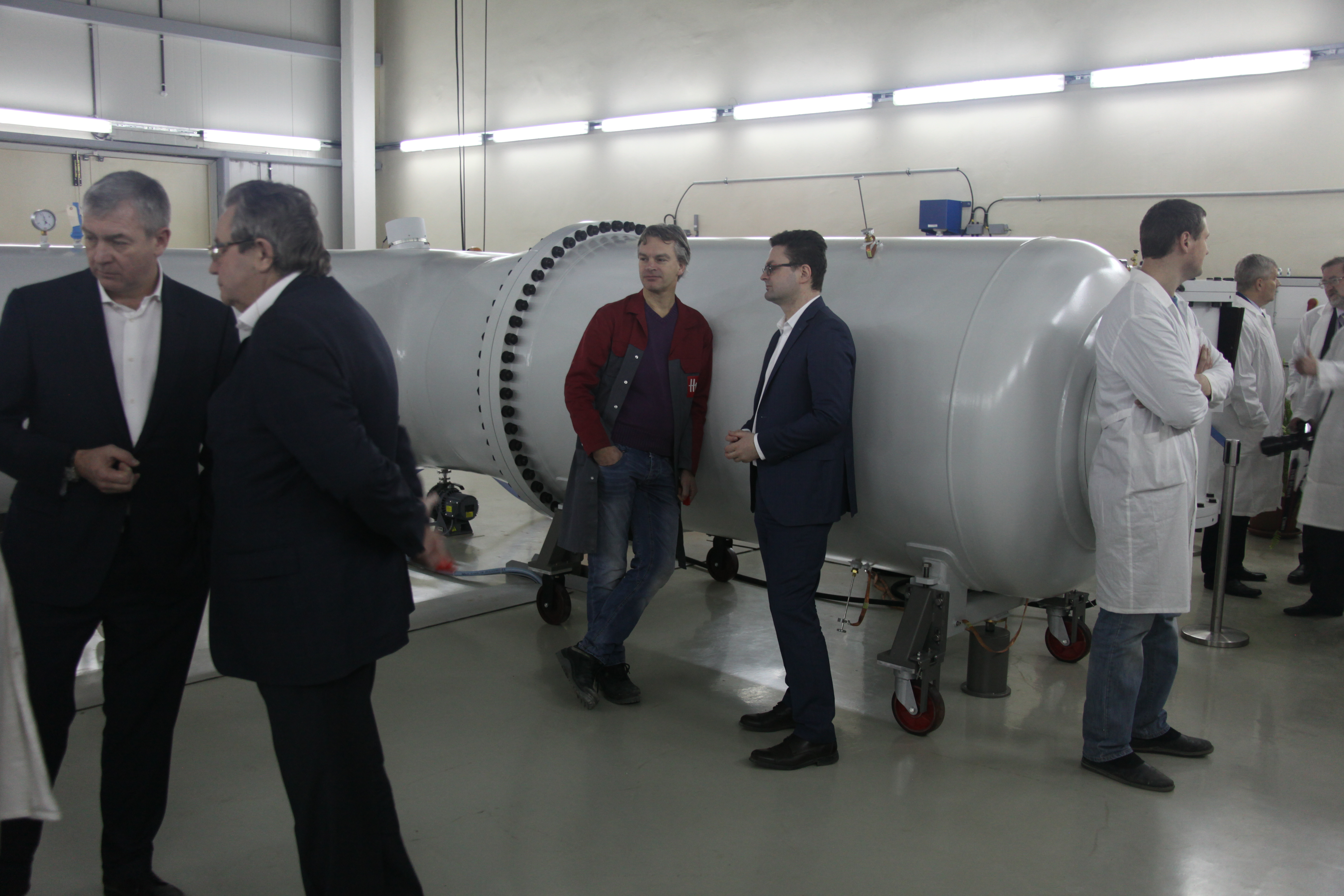 Новый ускоритель пущен в ФЭИ AtomInfo.Ru, ОПУБЛИКОВАНО 21.12.2015 В ФЭИ 18 декабря 2015 года прошла торжественная церемония, посвящённая пуску ускорителя "Тандетрон", позволяющего получать широкий спектр ускоренных ионов - от водорода до золота. ПРОДОЛЖЕНИЕ ПОСЛЕ ФОТО На торжественной церемонии, фото AtomInfo.Ru ![]() Медицинские планы Какое значение имеет пуск нового ускорителя? "Для ФЭИ - это наша обычная работа, а вот для страны - это великое событие", - считает Андрей Говердовский, генеральный директор обнинского института. Тандетрон - машина мирового класса, и эксплуатировать её будут специалисты, многие из которых получили профильное образование в обнинском ИАТЭ. Кроме задач научного плана, ускоритель предполагается задействовать для различных работ в интересах народного хозяйства. Среди гостей на церемонии пуска можно было видеть представителей МРНЦ имени А.Ф.Цыба. Это не просто визит вежливости - ускоритель планируют "развернуть в сторону медицины". "Будем делать нейтронную терапию. Более того, будем делать нейтрон-захватную терапию... Врачи уже подготовили носители, врачи уже знают, что делать и как делать", - пояснил Говердовский. Поставленные ориентиры впечатляют. Если всё будет по плану, то через новый ускоритель ФЭИ в год будет проходить от 2 до 4 тысяч пациентов. Для сравнения, общее число пациентов японского медицинского ускорителя HIMAC, о котором рассказывало электронное издание AtomInfo.Ru, за 20 лет составило всего около 10 тысяч. Преимущество ускорителя перед реактором в плане нейтрон-захватной терапии заключается именно в массовости лечения. На реакторе организовать столь большой поток пациентов трудно, так как требуется много времени на подготовку сеанса лечения. Первые этапы подготовки к внедрению нейтрон-захватной терапии на новом ускорителе в ФЭИ уже пройдены - так, были проведены опыты на крысах. Многое ещё только предстоит сделать, в том числе, нарастить машину дополнительным оборудованием. Огромное значение Помимо медицины, на тандетроне будут решаться и другие задачи - работы в интересах Росатома, работы по облучению кремниевых пластин для предприятий электронной промышленности, работы по заказам нефтяников. Ещё одно естественное применение ускорителя - наработка короткоживущих радиоизотопов. "Проще говоря, значение ускорителя для медицины и народного хозяйства огромное", - считает директор отделения перспективных исследований ФЭИ Олег Грудзевич. Разгонять на тандетроне можно ионы от водорода до золота. Но если потребуется, машина позволит разгонять и более тяжёлые ионы, вплоть до урана. Как рассказали корреспондентам AtomInfo.Ru инженеры нидерландской компании "High Voltage Engineering Europe", принимавшие большое участие в наладке ускорителя, одним из тестовых примеров является разгон ионов кремния до 24 МэВ. Компания из Нидерландов очень известна в своей области. Она сотрудничает с крупными институтами и организациями в Китае, Индии, Японии и ряде европейских стран. В этот список теперь входят и россияне. С пуском новой машины история ускорителей, работающих в ФЭИ с советских времён, не заканчивается. Специалисты института видят интересные возможности их совместной работы с тандетроном. Например, можно организовать своего рода небольшой коллайдер - столкнуть пучки двух типов заряженных частиц. Фоторепортаж Электронное издание AtomInf