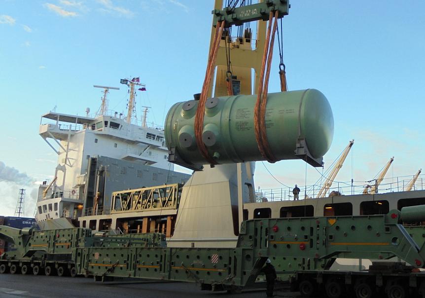 Компания ИНКОТЕК КАРГО отгрузила корпус реактора для Тяньваньской АЭС-2 Пресс-служба компании ИНКОТЕК КАРГО, ОПУБЛИКОВАНО 26.01.2016 Компания "ИНКОТЕК КАРГО" в рамках контракта с АО "Атомстройэкспорт" отгрузила на теплоход "TRINA" 10-ую судовую партию оборудования для Тяньваньской АЭС-2 в Китае общей массой 355 тонн, в которую вошёл корпус реактора весом 323 тонны для строительства четвёртого энергоблока. ПРОДОЛЖЕНИЕ ПОСЛЕ ФОТО Пресс-служба компании ИНКОТЕК КАРГО ![]() Доставка корпуса реактора в порт Санкт-Петербурга осуществлялась производителем (ПАО "Ижорские заводы") автомобильным транспортом на специализированном транспортёре. Учитывая весогабаритные характеристики автопоезда, длина которого составляла 99 метров, а масса 660 тонн, перевозка могла быть осуществлена только в 4-ый район порта. Данное обстоятельство, а также строительство западного скоростного диаметра над Морским каналом, которое исключило возможность перехода плавкрана "Демаг" в 4-ый район порта и его использование для перегрузки, определили единственно возможную схему работ - прямой вариант перегрузки с автотранспортного средства с использованием судовых кранов специально зафрахтованного судна. Для осуществления такой схемы перегрузки были проведены мероприятия по подготовке площадки для отстоя автопоезда на территории порта на период таможенного оформления. Стоки порожних контейнеров были перемещены в тыловую зону, а схема работ по прямому варианту была согласована с таможенными органами. В обязательном порядке, совместно со службами порта, были произведены расчёты нагрузок на причал и определена схема установки автопоезда на фронте перегрузки, исходя, в том числе, из грузоподъёмности судовых кранов. В соответствии с инструкциями производителя по перегрузке были закуплены и использованы синтетические стропы, вместо имевшихся на борту судна стальных. Подготовка плана производства работ осуществлялась совместно с судовладельцем - компанией SAL и агентом грузополучателя в КНР. Балластировочные операции в период работ и установка понтона для обеспечения остойчивости теплохода "TRINA" выполнялись членами судовой команды. Координация всего процесса и контроль работ по перегрузке корпуса реактора осуществлялись сотрудниками компании "ИНКОТЕК КАРГО". Погрузка всего объёма 10-ой судовой партии была успешно завершена 29 декабря 2015 года. Ключевые слова: Атомное машиностроение, Китай, АЭС Тяньвань, Пресс-релизы Другие новости: РФ выделила МАГАТЭ 24,6 млн рублей на ИНПРО Соответствующее распоряжение опубликовано на официальном портале правовой информации. На Темелине отловлены 14 зайцев После поимки животных выпустили на волю. В мире действует 441 и строится 67 блоков - PRIS 24 декабря 2015 года началось строительство блока HPR-1000 проекта CGN. |