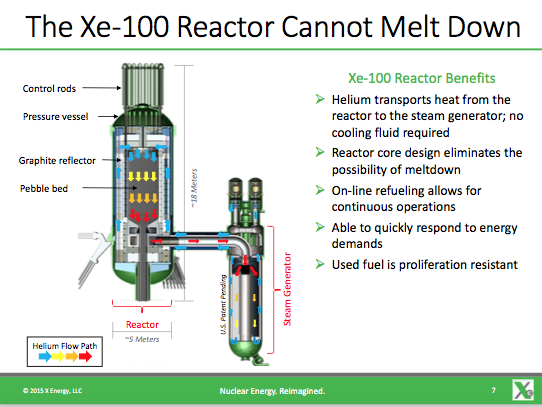 DoE поощрило два проекта AtomInfo.Ru, ОПУБЛИКОВАНО 27.01.2016 Министерство энергетики США объявило 15 января 2016 года о выдаче грантов двум компаниям, работающим над "усовершенствованными проектами ядерных реакторов". Гранты в рамках инициативы Это компании "X-energy" и "Southern Company". Продолжительность грантов составит "несколько лет", первоначально министерство вложит по 6 миллионов долларов в каждый из проектов. Гранты направлены на поддержку работ по "решению ключевых технических проблем в проектировании, строительстве и эксплуатации следующего поколения ядерных реакторов". В своём комментарии министерство отмечает "критически важную" необходимость инвестиций в новые технологии уже сегодня - это нужно для сохранения роли атомной энергетики как одного из "ключевых источников" электроэнергии в США в будущем. Гранты будут выданы в рамках недавно выдвинутой инициативы GAIN (Gateway for Accelerated Innovation in Nuclear), призванной поощрить инновационное развитие атомной отрасли Соединённых Штатов. Проекты, получившие гранты, обладают "потенциалом к демонстрации" в срок до 2035 года. Реактор Xe-100 Компания "X-energy", созданная доктором Кэмом Гафарияном (Kam Ghaffarian), выступает в партнёрстве с компаниями "BWX Technology", "Teledyne-Brown Engineering", "SGL Group", университетом штата Орегон и национальными лабораториями Айдахо и Окриджа. Предлагаемый проект - реактор Xe-100 с шаровыми твэлами. Это высокотемпературный реактор, способный вырабатывать 50 МВт электроэнергии и 125 МВт тепла. В стандартном варианте станция с Xe-100 будет состоять из четырёх блоков и занимать площадь не более 10 акров (0,04 км2). В проекте предлагается двухконтурная схема. Активная зона охлаждается гелием - таким образом, в ней полностью отсутствует вода. В качестве замедлителя используется графит. Турбина стандартная, от компании "Siemens". Принята схема ОПАЗ с однократным прохождением шаровых твэлов через активную зону. Количество шаровых твэлов в засыпке - 170 тысяч. Предполагается использование топливных элементов типа TRISO, обогащение по урану-235 - до 10%. Принципиальным преимуществом реактора Xe-100 его создатели называют невозможность аварии с расплавлением активной зоны. В 2014 году электронное издание AtomInfo.Ru сообщало о имеющихся намерениях компании "X-energy" подать в 2017 году заявку в комиссию по ядерному регулированию (NRC) США на лицензирование своего проекта. По состоянию на начало 2016 года, какой-либо новой информации по данному вопросу не появилось. Двухконтурная схема Xe-100 ![]() Основные преимущества реактора Xe-100 ![]() Проект MCFR Компания "Southern Company Services" выступает в партнёрстве с компанией "TerraPower", институтом EPRI, университетом Вандербилта и национальной лабораторией Окриджа. Грант получил жидкосолевой реактор, а конкретно - проект MCFR (Molten Chloride Fast Reactor), в котором используются урансодержащие хлоридные расплавы, а не фторидные, как во многих других проектах ЖСР. Переход от фторидов к хлоридам позволяет предположить, что новый проект будет быстрым реактором. Детальной информации о проекте MCFR пока не имеется. Об интересе "TerraPower" к тематике ЖСР электронное издание AtomInfo.Ru сообщало в октябре 2015 года. Источники, присутствовавшие на презентации компании, утверждают, что во время презентации были названы только общеизвестные преимущества жидкосолевого направления. По состоянию на данный момент, хлоридные ЖСР не доведены до стадии демонстрации. Одно из