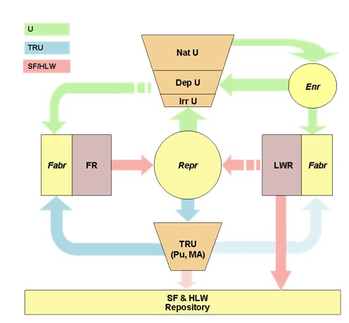 Быстрый трансформер времён GNEP Владимир Рычин, AtomInfo.Ru, ОПУБЛИКОВАНО 21.11.2016 Уходящая администрация президента США не слишком жаловала перспективные нелегководные реакторы. Министр энергетики Эрнест Мониз заявлял прямо, что первые коммерческие блоки с такими реакторами появятся в США не ранее 2040 года. Изменит ли Вашингтон своё мнение после прихода к власти Дональда Трампа? С равным успехом можно ожидать любого сценария - активной поддержки, вялого топтания на месте или полного пренебрежения. Пока в команде Трампа определяются с мнением об атомной энергетике, есть смысл вспомнить, какими видели в США быстрые реакторы в период последнего по времени всплеска интересов к ним в этой стране. Воспользуемся для этого материалами прошедшего в 2007 году в Обнинске "Быстрого клуба". Реактор-выжигатель Американский быстрый реактор эпохи GNEP - это, прежде всего, реактор-выжигатель. Перед ним не стоит задача расширенного воспроизводства, он должен утилизировать часть трансурановых элементов, чтобы снизить нагрузку на геологическое хранилище ОЯТ "Гора Юкка". Юкка в описываемое время ещё жива, до прихода в Белый дом могильщика проекта Барака Обамы остаётся некоторое время. Хотя проект хранилища не вышел за пределы бумажной работы, в его способности принять всё облучённое топливо с АЭС США уже сомневаются, а тема быстрых выжигателей, сокращающих общий объём ОЯТ, приобретает актуальность. Актиниды в топливном цикле с выжигателями и геологическим хранилищем ![]() В Аргоннской национальной лаборатории в качестве выжигателя видели быстрый натриевый реактор-тысячник с оксидным или металлическим топливом, причём замена одного типа топлива на другой должна была происходить без больших сложностей. Поставленные ограничения по обогащению топлива равнялись 30% для металла и 33% для оксида, предельное максимальное выгорание - 15%, ограничение по флюенсу быстрых нейтронов - 4×1023 н/см2. В базовом варианте коэффициент конверсии для обоих типов топлива составлял 0,85 по делящимся изотопам и более 0,7 по всем трансурановым элементам. Правда, равенство КК для двух вариантов достигалось существенными изменениями в физике и геометрии активной зоны. Так, если для металла активная высота составляла 81 см, то для оксида уже 107 см. В оксидной зоне потребовалось резко увеличить объёмную долю топлива - в холодном состоянии, 37% против 29% у металлической. Удельное энерговыделение и средняя плотность потока нейтронов для оксида равнялись 230 Вт/см3 и 2,65×1015 н/(см2с), для металла - 300 Вт/см3 и 3,2×1015 н/(см2с). Значения βэфф для обоих вариантов были практически равны (0,003). Также практически равным оказались и натриевые пустотные эффекты - порядка 6,5 долларов каждый. А вот Допплер и мощностной коэффициенты у оксидной зоны были в разы больше по модулю, чем у металлической, и оксидную зону в Аргонне критиковали с точки зрения обеспечения пассивной безопасности. Что касается основного предназначения выжигателя, то его показатели были таковы. В начале каждой равновесной кампании в активной зоне выжигателя находилось 2,9 тонны трансурановых элементов для металлического топлива и 3,6 тонны для оксидного топлива. Уменьшение массы трансурановых элементов за год составляло 81,6 кг для металлической активной зоны и 86,5 кг для оксидной зоны. Быстрый реактор-выжигатель ![]() Изменения КК Интересной особ