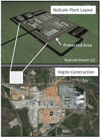 Рис.2. Реакторный модуль NuScale. ![]() Опыт инноваций Изначально ВМС США были пионерами в деле освоении малых ядерных установок, которые использовались для нужд оснащения подводных лодок, авианосцев и крейсеров. По состоянию на середину 2015 года на площадке "Hanford" в штате Вашингтон было размещено 127 реакторных отсеков выведенных из эксплуатации установок, ожидается поступление ещё 100 штук. Помимо этого докладчик отметил, что имеющийся опыт разработки и эксплуатации инновационных концепций реакторных технологий в национальных лабораториях США включает в себя два крупных проекта. С апреля 1982 года по апрель 1992 года на площадке "Hanford" функционировал многопрофильный исследовательский реактор с натриевым охлаждением "Fast Flux Test Facility" (FFTF) мощностью 400 МВт(т). Вплоть до 1994 года на территории лаборатории "Argonne" в штате Айдахо эксплуатировался "Experimental Breeder Reactor-II" (EBR-II) мощностью 62,5 МВт(т), также с натриевым теплоносителем. Несомненная польза Применение современных реакторов малой мощности может способствовать глобальному усилению национальной безопасности США. Нередко происходящие в стране стихийные бедствия, такие как торнадо или наводнения, могут нарушить линии передачи электроэнергии, что приводит к ограничению или полному обесточиванию критически важных объектов федерального уровня. И в этом смысле АСММ, благодаря присущим им особенностям, могут служить надёжным автономным источником электроэнергии, способствуя созданию так называемого энергетического острова (Power Islanding). Размеры площадки размещения типовой АСММ на примере "NuScale" - охраняемая зона 17 га, общая занимаемая площадь 21 га (Рис.3).