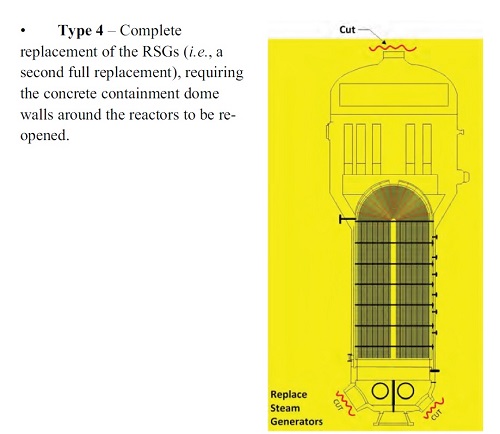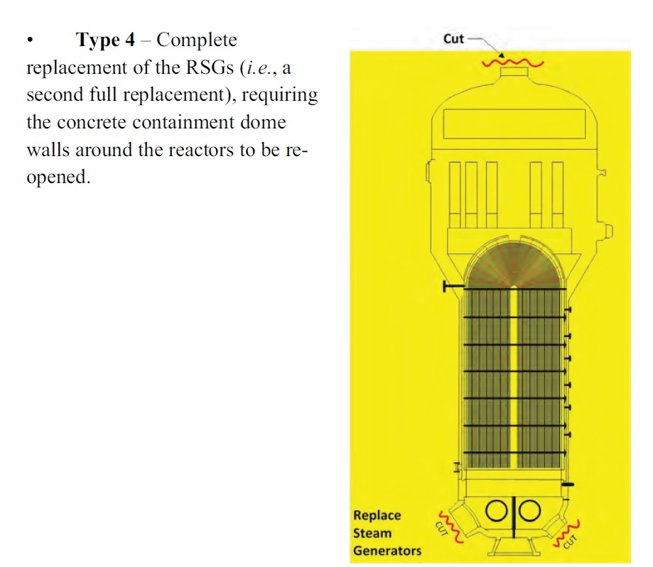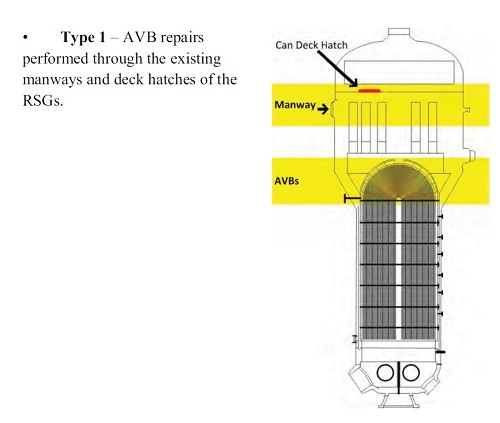 В 2017 году международная торговая палата поставила точку в длившемся с 2013 года арбитражном разбирательстве вокруг парогенераторов АЭС "San Onofre" (США). 31 января 2012 года третий блок АЭС "San Onofre" (США) был остановлен после обнаружения течи в парогенераторе. Дефекты были найдены и на парогенераторах блока №2. Эксплуатация, поставщики и регуляторы приступили к анализу инцидента. Одновременно с этим разрабатывались, обсуждались и критиковались планы ремонта парогенераторов, потому что эксплуатирующая организация компания SCE не оставляла надежды вернуть оба блока в строй, пусть и с ограничениями. Предложение MHI Изготовитель (компания MHI) первое формальное предложение по ремонту подготовил и передал американцам 31 мая 2012 года. Нужно сразу добавить, что SCE не сочла его "адекватным". Предложение японцев уместилось на двух слайдах. На первом из них была написана формула для расчёта коэффициента SR (stability ratio) - отношение эффективной скорости пара и критической скорости. Как мы помним, коэффициент SR требовалось уменьшить, чтобы создать дополнительные запасы против вибраций. Математически для этого нужно было либо уменьшить числитель, либо увеличить знаменатель. Уменьшать числитель (эффективную скорость пара) японцы предлагали на выбор двумя путями - изменить шаг расстановки трубок в парогенераторе (пересобрать трубный пучок) или модифицировать внутренние элементы парогенератора - например, трубные доски или опускной участок (downcomer). При этом сами же японцы сочли оба варианта малоэффективными. Знаменатель дроби, с точки зрения инженеров MHI, был более интересен. Для его увеличения было предложено 17 вариантов - установка дополнительных решёток, замена решёток на решётки иной формы, модификация схемы входа воды, и так далее. Большинство из этих вариантов японцы предложили отбросить. Спасать парогенераторы, по их мнению, следовало путём установки в них дополнительных более толстых антивибрационных решёток (AVB). Различным способам их установки был посвящён второй слайд. Оставалось оценить время и сложность операции по установке новых решёток. В MHI пообещали до конца июля сделать макет парогенератора и до середины сентября отработать на нём все необходимые действия. В этом случае к ремонту на блоках можно было бы приступить весной или летом 2013 года. В SCE в осуществимости японских графиков усомнились сразу. Во-первых, парировали американцы, реально к ремонту получится приступить не ранее осени 2013 года. Во-вторых, для вставки решёток потребуется снять верхнюю часть парогенераторов, что сделает всю операцию крайне трудоёмкой. Оставалось неясным, в какой среде вставлять решётки - в заполненном водой парогенераторе или осушённом (проблема дозовой нагрузки!). Наконец, достаточным ли будет такой ремонт для обеспечения 40-летнего срока службы парогенераторов? Ответить сразу на эти и другие вопросы у японских инженеров не получилось. Предложения трёх компаний В начале июня SCE получила предложения по ремонту от трёх компаний - "Westinghouse", AREVA и B&W. "Westinghouse" сосредоточился на поиске наилучших вариантов по замене тех или иных узлов парогенераторов, включая даже полную замену трубного пучка. В компании пришли к выводу, что надо либо менять, либо нарастить AVB-решётки, однако подписываться под таким предложением не стали, сославшись на желательность дальнейшего а