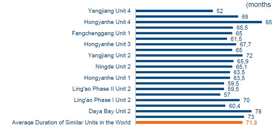 CGN - блок Fangchenggang-3 AtomInfo.Ru, ОПУБЛИКОВАНО 03.01.2019 Средняя продолжительность строительства атомных энергоблоков китайской корпорации CGN составляет 66,2 месяцев от первого бетона до сдачи в коммерческую эксплуатацию. Об этом заявил представитель департамента международного сотрудничества корпорации CGN Лю Юнь, выступая на прошедшей в ноябре 2018 года в Праге международной конференции по атомной энергетике. По его словам, для "подобных блоков" за рубежом среднее время от первого бетона до ввода в эксплуатацию составляет 71,8 месяцев. Щёлкните левой клавишей мыши для просмотра ![]() Приоритетный проект корпорации CGN в области реакторов поколения III/III+ - строительство в Китае блока №3 АЭС "Fangchenggang" с реактором HPR-1000. По графику на его завершение отводится 62 месяца, он должен быть введён в конце февраля 2021 года. Докладчик отметил, что график в целом пока выполняется. Так, монтаж купола контейнмента третьего блока был произведён 23 мая 2018 года на восемь дней раньше планового срока. Щёлкните левой клавишей мыши для просмотра ![]() ![]() В общей сложности, для "Fangchenggang-3" было необходимо законтрактовать 360 пакетов контрактов на поставку оборудования. Эта работа была завершена в мае 2017 года. Поставка основного оборудования реакторного отделения блока должна завершиться в первой половине 2019 года. По графику его монтаж должен быть завершён до 15 июля 2019 года. По состоянию на ноябрь 2018 года два первых этажа готовы для начала монтажа. График поставки основного оборудования реакторного отделения ![]() ![]() Ключевые слова: Азия, Китай, Hualong (Китайский дракон), Статьи Другие новости: На энергоблоке №1 Белорусской АЭС начался основной этап подготовки к загрузке ИТВС В ближайшее время в проектное положение будет установлен БЗТ. "Тяньвань-4" введён в коммерческую эксплуатацию Ключевое событие "Начало коммерческой эксплуатации энергоблока №4 Тяньваньской АЭС" состоялось 22 декабря. Первая промышленная партия MOX-топлива для БН-800 прошла приёмочные испытания Сделан первый шаг на пути к серийному производству. |