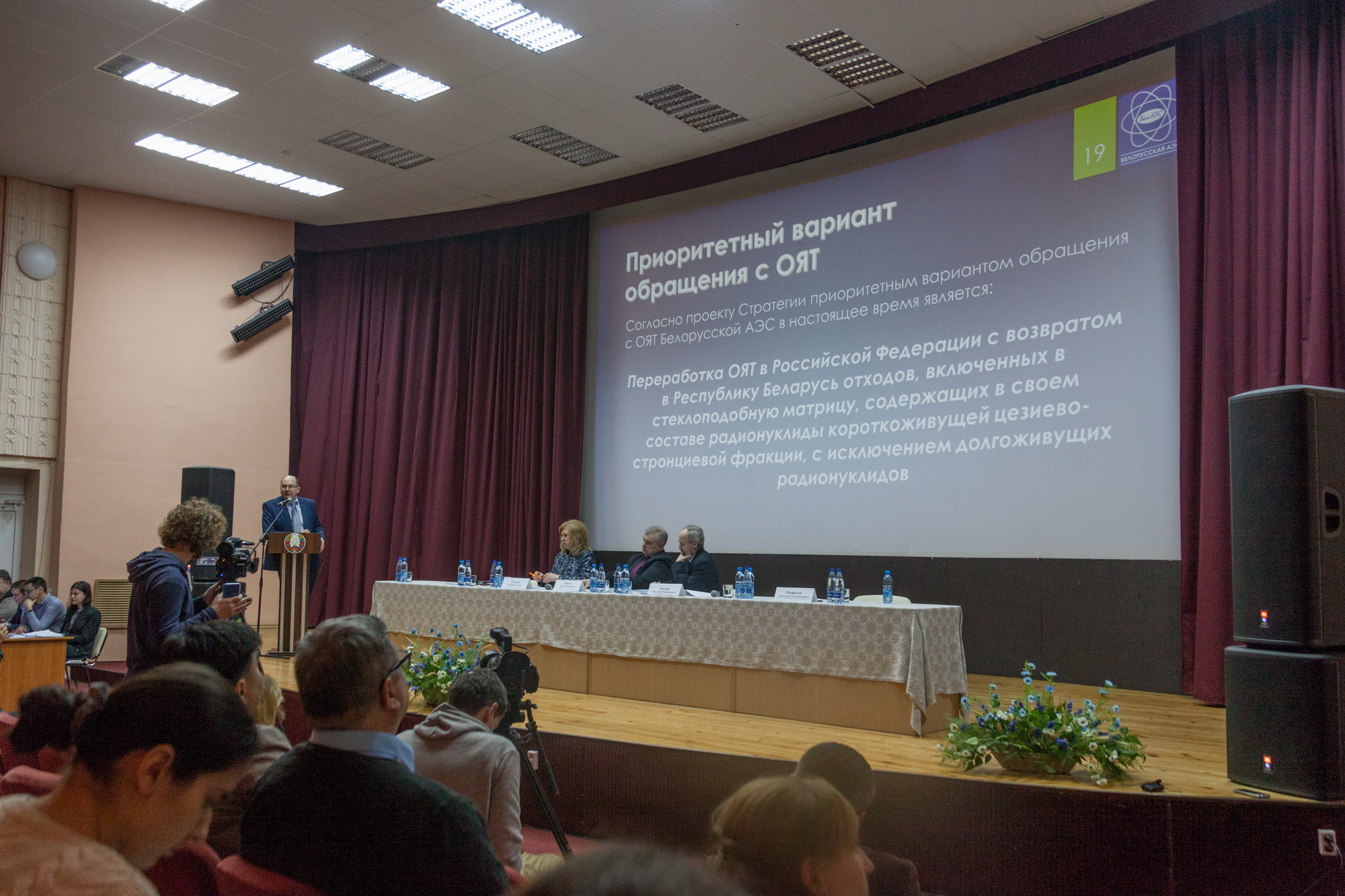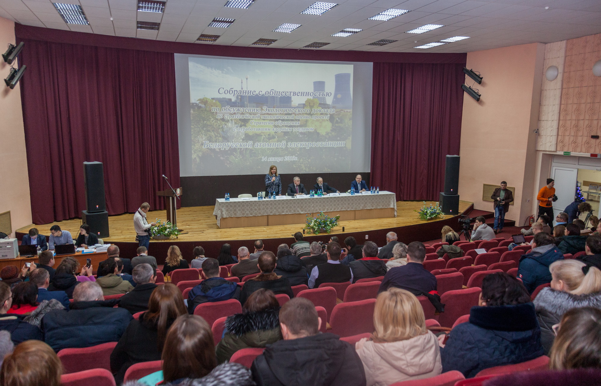 Как было (2009 год) Девять с лишним лет назад, 9 октября 2009 года, в киноконцертном зале белорусского города Островец прошли общественные слушания, посвящённые предварительному отчёту об оценке воздействия на окружающую среду (ОВОС) Белорусской АЭС. Такой искусственно созданной властями напряжённости, вероятно, Островец не видел за всю свою историю. Автомобили ГАИ дежурили на въезде в город. Подходы к киноконцертному залу были перекрыты турникетами и оцеплены милицией, а около зала стояли автобусы с милицией и грузовики ОМОНа. Пройти к месту слушаний можно было только через личный досмотр милицией. В зале было полно молодых людей с бейджами "Волонтёр", в которых по внешнему виду и поведению без труда можно было узнать работников силовых ведомств. Чтобы заполнить как можно больше мест в зале с целью не допустить на слушания противников АЭС, на мероприятие автобусами доставили несколько "организованных групп трудящихся" с разных регионов Гродненской области. При этом зал, в котором проводились слушания, не вмещал всех желающих, и большое количество людей вынуждено было смотреть в вестибюле трансляцию происходящего на мониторах. Когда приехавший на слушания из Москвы эколог и профессиональный противник АЭС физик Андрей Ожаровский попытался пронести в зал распечатанные критические замечания по ОВОСу, его задержала милиция и он был приговорён местным судом к семи суткам административного ареста за "вызывающее поведение". Слушания 2009 года ![]() ![]() Как стало (2018 год) 14 января 2019 года в том же киноконцертном зале города Островец прошло собрание с общественностью по обсуждению экологического доклада по стратегической экологической оценке проекта стратегии обращения с отработавшим ядерным топливом Белорусской атомной электростанции.