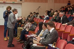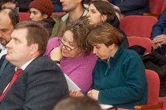 По мировой практике хранения ОЯТ на слушаниях пояснили так. Например, в Финляндии разрабатывают глубинное геологическое захоронение - сеть тоннелей и шахт в скальных породах на глубине порядка 500 метров, где отработавшее топливо будут хранить в бентоните в чугунно-медных контейнерах. В Чехии принято сухое хранение с помещением контейнеров в специализированное хранилище. На Украине на Запорожской АЭС "от бедности" практикуется сухое контейнерное хранение на открытой площадке. Такое же сухое хранение в 120 контейнерах на открытой площадке и в Литве на Игналинской АЭС в нескольких километрах от границы с Беларусью. В Беларуси радиоактивные отходы, которые останутся после переработки ОЯТ, предлагается захоранивать "в приповерхностных сооружениях". Вопросы и ответы Когда перешли к обсуждению, как и ожидалось, наиболее активными оказались противники БелАЭС из общественной организации "Экодом". Одним из главных вопросов был - почему в докладе не проработаны варианты на случай, "если что-то случится с Россией", изменится политическая обстановка или "Россия перестанет существовать"? На что был получен ответ, что даже при сегодняшних не лучших отношениях России с Украиной "Росатом" продолжает по Украине выполнять договорённости, связанные с ядерной энергетикой. Не понравилось экологам и отсутствие экономических расчётов различных вариантов обращения с ядерными отходами. В ответ разработчики сослались на коммерческую тайну. Вполне логичным был вопрос местного жителя и давнего активиста против АЭС Николая Уласевича, который обратил внимание на упомянутые в докладе три возможных места хранения РАО на расстоянии 5 км от БелАЭС. Николай попросил обозначить эти точки. От авторов доклада ему попытался ответить проработавший 60 лет в атомных исследованиях один из старейших работников "Сосен" Алий Петрович Малыхин. Алий Петрович пояснил, что эти площадки детально исследованы, но он "не помнит, где они расположены". Ведущий пообещал ответить на этот вопрос в письменном виде. Обсуждение доклада ![]() ![]() Николай Уласевич (слева) и Алий Малыхин ![]() Поскольку на собрание прибыли Щукин и Горячко, то они не могли не выступить. В силу преклонного возраста Валерий Щукин уже не так активен, как 20 лет назад. Сейчас для него главное - присутствие, а не участие. Поэтому основное выступление было за Горячко. Это как раз тот случай, когда фамилия соответствует поведению. Если бы Горячко раньше интересовалась темой АЭС, она не задавала бы вопросы, на которые сотни раз были даны ответы более 10 лет назад. А именно - почему АЭС в Беларуси строит Россия, почему в российских реакторах будет российское топливо и т.д.? Естественно, не обошлось без заявлений от имени всего белорусского народа. Докладчики вежливо ответили, что эти вопросы являются настолько важными и сложными, что по ним Горячко получит на всё письменные ответы. Официально это изложено так: "Во время собрания 12 человек обратились с вопросами по докладу, на большинство из них были даны ответы. Ответы на вопросы, требующие предоставления дополнительной информации, будут переданы обратившимся в 10-дневный срок". Выводы и заключение По итогу обсуждений можно сделать следующие выводы. Отсутствие официальных представителей Литвы было вполне предсказуемым - при яром протесте против БелАЭС уход от конструк