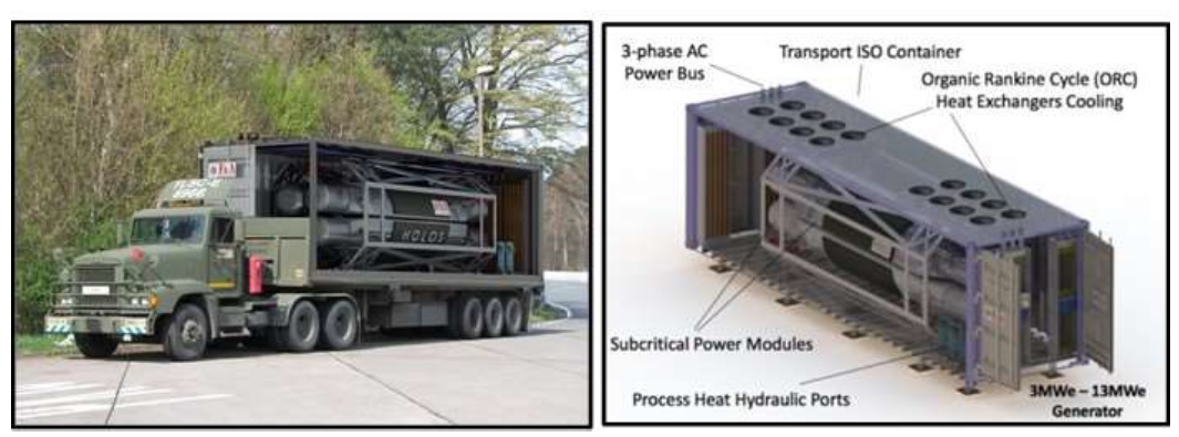 Мобильные АЭС для армии США Владимир Рычин, AtomInfo.Ru, ОПУБЛИКОВАНО 02.03.2019 Военные США всерьёз взялись за тематику малых модульных реакторов. Выбраны пять возможных кандидатов, демонстрация планируется в ближайшем будущем. Но остаётся ещё немало проблем различного характера. Мобильные станции Армиям требуется энергия, а для выработки энергии нужны энергоносители. Свести нескончаемые потоки энергоносителей к минимуму, по замыслу американских военных, должны мобильные атомные станции (MNPP). Мобильные станции должны изготавливаться и вводиться на заводах и доставляться к месту службы практически любым возможным путём - по суше, по морю, по воздуху. Кампания MNPP должна быть не менее 10 лет, а лучше до 20 лет. Перегрузок топлива на месте службы не предусматривается, для замены топлива станцию будут возвращать на завод. Достаточно специфическим требованием к MNPP является необходимость обеспечить надёжную работу при условиях многократных остановов и пусков, а также перемещений с длинными транспортными плечами. Концепция перемещений мобильных станций ![]() Основные элементы мобильной станции ![]() Требуемые для их деятельности мощности военные США оценивают с большим разбросом - от нескольких до многих мегаватт. Но ограничения по размерам, неминуемо вытекающие из требований по транспортировке, диктуют более узкий диапазон - от 1 до 10 МВт. Наличие более крупных потребителей ставит также условие модульности. Первые выполненные оценки потребностей в MNPP касаются, в основном, известных американских военных баз. В таблице далее по тексту приводятся нижние оценки количества мобильных станций, которые армия США потенциально могла бы приобрести. Для фирм-разработчиков реакторных технологий они выглядят привлекательно - до 60 станций по 5 МВт(э) или до 34 станций по 10 МВт(э). А ещё ведь имеются и верхние оценки - до 108 станций по 5 МВт(э) и до 105 станций по 10 МВт(э). Некоторые возможные места применения мобильных станций ![]() Проекты-кандидаты В романтический период развития атомной отрасли американские военные (и лично адмирал Риковер) были среди самых ярых приверженцев легководных технологий. В XXI веке они изменили своим давним пристрастиям и теперь любят погорячее. В качестве возможных кандидатов для применения на мобильных АЭС, по состоянию на конец 2018 года, были отобраны пять проектов - причём не только американских. Среди кандидатов можно видеть проект "U-Battery" от европейского концерна URENCO. Это ВТГР на базе британского "Dragon". Мощность 4 МВт(э), топливо TRISO обогащением 19,75%. Концерн планирует продемонстрировать свой проект в 2026 году. Есть сложность, состоящая в том, что проект адаптирован под обслуживание рудников. Для применения на мобильных АЭС потребуются переделки и модификации, причём сегодня сложно сказать, насколько трудоёмкими они окажутся. Следующий в списке кандидатов ВТГР - канадский проект "StarCore". Мощность 2×10 МВт(э), топливо TRISO, кампания 5 лет. Реактор будет работать без персонала, с управлением через спутник. Как и в случае европейского проекта, канадский реактор оптимизирован под снабжение рудников и удалённых посёлков с потребностями порядка 20 МВт(э). Объём переделок для применения на мобильных станций тккже неизвестен. Третий кандидат - набирающий известность проект "eVinci" от компании "Westinghouse". Для мобильного применения его потребуется пе