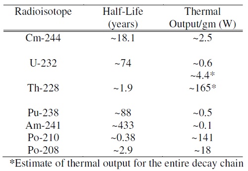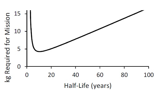 Изотопы для ледяных лун AtomInfo.Ru, ОПУБЛИКОВАНО 31.05.2019 В феврале 2019 года в Ричланде (США) прошла конференция американского ядерного общества, посвящённая различным вопросам применения ядерных технологий в космосе. В одном из докладов (авторы - Д.Крамер и др.) был рассмотрен вопрос о выборе изотопов для РИТЭГов, которые могут применяться в программах по исследованию ледяных спутников Солнечной системы. Миссия на Европу Поверхность ледяных спутников состоит, в основном, из водяного льда. Есть гипотезы, что под этой поверхностью может находиться океан, пригодный для некоторых форм жизни. Один из наиболее известных ледяных спутников - Европа, спутник Юпитера, открытый Галилеем. В планах НАСА на далёкую перспективу - отправить на Европу зонд, способный пробурить километры льда и добраться до подлёдного океана. Решение этой задачи станет весьма энергоёмким для космоса. Предварительные расчёты показывают, что для бурения льда понадобится тепловая мощность порядка 7,5 кВт(т). Если по-прежнему ориентироваться на РИТЭГи из плутония-238, то загрузка по 238PuO2 составит 17-18 кг, что очень много. Авторы доклада на конференции в Ричланде рассмотрели альтернативные варианты источников для РИТЭГов для миссий, подобных бурению на Европе. Изотопные генераторы в таких миссиях должны сохранять работоспособность и обеспечивать выдачу энергии в требуемых объёмах на протяжении многих лет. Так, для миссии на Европе в статье было принято, что бурение начнётся спустя 10 лет после запуска космического аппарата с Земли и продлится пять лет. Теоретически подобным условиям работы отвечают сотни радиоизотопов. Но есть набор требований, который резко сокращает список претендентов, и требование по периоду полураспада - лишь одно из них. Изотоп должен быть доступен, должна быть отработана технология получения образцов с нужными удельными активностями, а также технология производства изотопа в неметаллической форме. Кроме того, желательно, чтобы изотоп был альфа- или бета-излучателем с низкими энергиями гамма-квантов. Изотопы-кандидаты Авторы доклада выбрали для более детального анализа семь возможных кандидатов. В их числе как освоенный в космосе плутоний-238, так и более экзотические варианты - например, кюрий-244. ![]() У функции, связывающей для требуемой мощности массу изотопа с его периодом полураспада, есть минимум, соответствующий оптимальному выбору изотопа как источника для РИТЭГов. Ниже приводится график для мощности 7,5 кВт(т) для 15-летней миссии - правда, рассчитанный авторами с большим количеством приближений. Если взять график за основу, то очевидно, что один из лучших выборов изотопа - кюрий-244. ![]() Изотоп 244Cm рассматривался в 60-70-ые годы как изотоп для космических РИТЭГов, но проиграл тогда конкуренцию плутонию-238. Наиболее вероятно, что его отвергли по причине малого периода полураспада. Но для проекта по бурению на Европе данный фактор работает в плюс - кюрия-244 потребуется в четыре раза меньше по массе, чем плутония-238 (4,5 кг против 18 кг). В Окридже выполнен комплекс работ по изучению свойств 244Cm с точки зрения его применения в изотопных генераторах. В частности, изучались возможности получения кюрия-244 из ОЯТ, долговременная совместимость оксида 244Cm2O3 с различными материалами при высоких температурах, вопросы производства таблеток из 244Cm2O3, а также вопросы, 