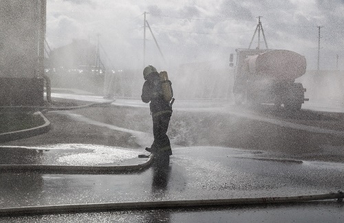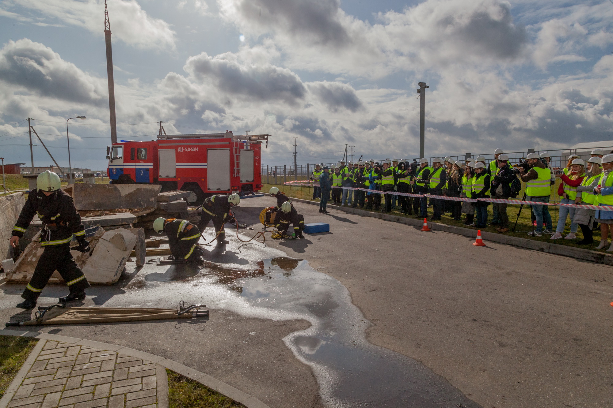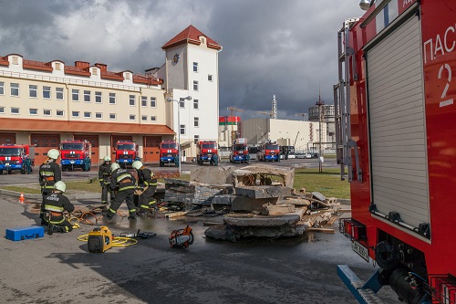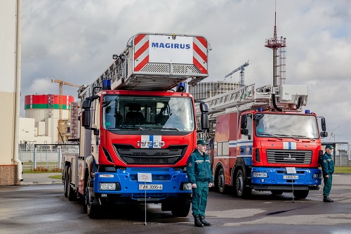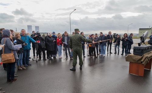В рамках проходившего 8-11 октября 24-го Белорусского энергетического и экологического форума был организован пресс-тур для журналистов зарубежных СМИ на Белорусскую АЭС. Здесь и далее - фото Белатом. ![]() По странам, откуда прибыли часть участников пресс-тура, можно догадаться, где сейчас имеются интересы "Росатома" - Узбекистан, Турция, Египет. Также были участники из Латвии, Польши, России и Беларуси. Не были забыты журналисты из озабоченной близостью БелАЭС Литвы. Традиционно пресс-туры на БелАЭС начинаются с посещения информационного центра в Островце, где посетителей АЭС знакомят с требованиями безопасности и кратко рассказывают о Белорусской АЭС. Информационный центр БелАЭС в Островце ![]() Информационный центр БелАЭС в Островце ![]() Директор информационного центра БелАЭС Эдуард Свирид ![]() Проезжая мимо БелАЭС, заметно, что теперь покрасили обе градирни, нанеся на них красно-белые кольца, а по радиусу башни первого энергоблока нарисован государственный флаг Беларуси. Вид Белорусской АЭС с дороги Островец-Гоза ![]() Обычно из инфоцентра журналистов везут на БелАЭС. Но в этот раз журналистов повезли на позицию войск ПВО 1146-го гвардейского зенитного ракетного полка, расположенную поблизости от БелАЭС в направлении деревни Гоза. Позиция войск ПВО 1146-го гвардейского зенитного ракетного полка ![]() Здесь участникам пресс-тура показали комплексы ПВО Тор-М2К. Комплекс ПВО Тор-М2К ![]() От российских Торов белорусские отличаются тем, что комплекс размещён на колёсном шасси МЗКТ 69222 (Минский завод колёсных тягачей). Комплексы ПВО Тор-М2К ![]() Дальность действия станции обнаружения целей 32 км при том, что до Литвы от БелАЭС 20 км. Максимальная скорость поражаемых воздушных объектов до 700 метров в секунду. Зона поражения - до 15 км по дальности и до 10 км по высоте. По заверениям военных, радар Тора без проблем обнаруживает в районе БелАЭС цели размером с шарик диаметром 5 см и, тем более, дроны, используемые фотографами. В машине управления комплексами ПВО Тор-М2К ![]() На позиции, где побывали журналисты, несут дежурство четыре пусковых установки, готовые выпустить 16 ракет. ![]() На случай, если воздушная цель, летящая к АЭС, будет прятаться за высокие градирни или здания станции, с другой стороны от БелАЭС оборудована такая же позиция ПВО. А в стороне - ещё и основная база полка ПВО, также с пусковыми позициями. В дополнение к электронным глазам, на каждой из позиций ПВО возвышается 30-метровая вышка, откуда ведёт визуальное наблюдение военный. Кроме электронных глаз комплексов ЗРК, ![]() Кроме классического оружия журналистам показали переносной передатчик помех для противодействия мультикоптерам (дронам) "Гроза Р2", который может подавлять каналы аппаратуры спутниковой радионавигационной системы (СРНС) БПЛА и каналы управления БПЛА на расстоянии 1 километр. "Гроза Р2" производится в Беларуси. Расчёт ПВО, вооружённый переносным передатчиком помех ![]() Журналисту из Турции нравится переносной передатчик помех ![]() По словам командира полка Андрея Долбика, Белорусская АЭС является самым защищённым объектом в Беларуси от атаки с воздуха. ![]() От базы ПВО журналистов повезли к БелАЭС показать пожарную аварийно-спасательную часть (ПАСЧ) "Гоза", обеспечивающую безопасность станции. Здание этой части - первая капитальная постройка на стройплощадке БелАЭС. Когда т