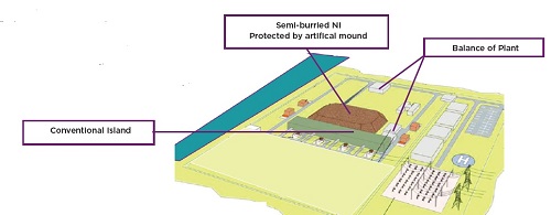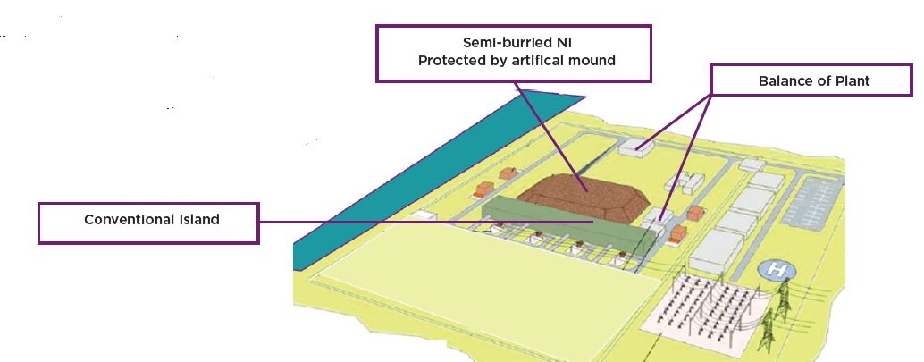 В ходе 63-ей сессии генеральной конференции МАГАТЭ, прошедшей в Вене в сентябре 2019 года, профильные французские чиновники и топ-менеджеры с большой помпой объявили о начале работ по созданию французского реактора малой мощности NUWARD. Участие в проекте компании "Technicatome" заставляет предположить, что NUWARD будет основываться на французских лодочных технологиях. В первой части статьи мы кратко рассмотрели историю развития лодочных реакторов во Франции. Во второй части мы проанализировали проект NP-300, одну из предыдущих попыток французов сделать гражданский проект на базе лодочного. В третьей части статьи рассмотрим подробнее непосредственных предшественников NUWARD. Французский консорциум Прежде всего, стоит хотя бы в третьей части статьи, наконец, упомянуть, что французский интерес к малой энергетике зародился не в этом сентябре. В 2012-2015 годах по инициативе правительства Франции был создан и действовал консорциум по малым реакторам, в состав которого входили комиссариат, AREVA, EDF и DCNS. В задачи консорциума входило выполнить технико-экономический анализ целесообразности и потенциала разработки французского проекта малого реактора с прицелом на международные рынки. Сначала был выполнен глобальный анализ, а затем прошло рассмотрение по отдельным странам, которые могли бы стать покупателями. Авторы анализа постарались учесть различные факторы - от экономики (100 евро за МВт×ч) до политики и геополитики. Результаты их порадовали, они нашли, что до 2035 года в мире может быть построено около 120 малых реакторов мощностью по 150 МВт(э). Наибольший интерес в подобных исследованиях представляют, конечно, не интегральные показатели, а разбивка по потенциальным заказчикам. Но именно эту информацию французский консорциум из открытой версии итогового отчёта изъял, поэтому нам остаётся только догадываться, где же расположен малоэнергетический Клондайк. С большой долей вероятности можно предположить, что в первую очередь в качестве клиентов французы рассматривали страны с развивающейся экономикой - Чили, Индонезия, Саудовская Аравия и другие. Предшественник NUWARD Таким образом, целевые ориентиры были заданы, и атомные компании Франции взялись за работу. В феврале 2018 года компания "Techicatome" опубликовала небольшую статью, фактически заметку, в которой были крупными мазками обрисованы основные черты проекта малого реактора, до стадии смешения похожие на столь же крупномазковые черты NUWARD. Своего названия реактор тогда ещё не имел, поэтому для удобства условно обозначим его в нашей статье как ММР-2018. Ядерный остров ММР-2018 имеет полуподземное размещение (как и NP-300), причём сверху он укрыт насыпью. Машзал и прочее неядерное оборудование (BOP) строятся по старинке, то есть на земле. Щёлкните левой клавишей мыши для просмотра ![]() Мощность одного блока (модуля) составляет 170 МВт(э), что совпадает с мощностью NUWARD. На площадке могут быть установлены или два, или четыре модуля (у NUWARD пока говорится только о двух модулях). А все вместе авторы NUWARD и ММР-2018 (не исключено, что это одни и те же люди) явно ориентируются на идеологию "NuScale", сборку станции средней мощности из модулей малой мощности. Тип реактора - PWR, излюбленная технология французов. Топливо обычное, стержневого типа (то есть, твэлы). Обогащение урана - менее 5%. Борное регулирование отсутствует. Системы безопас